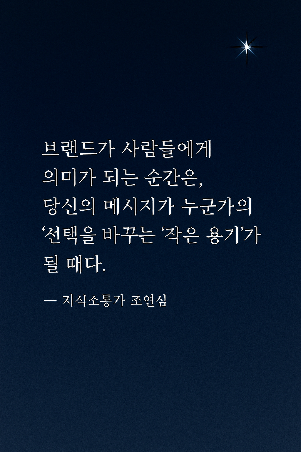 “브랜드가 사람들에게 의미가 되는 순간은, 당신의 메시지가 누군가의 선택을 바꾸는 ‘작은 용기’가 될 때다.”