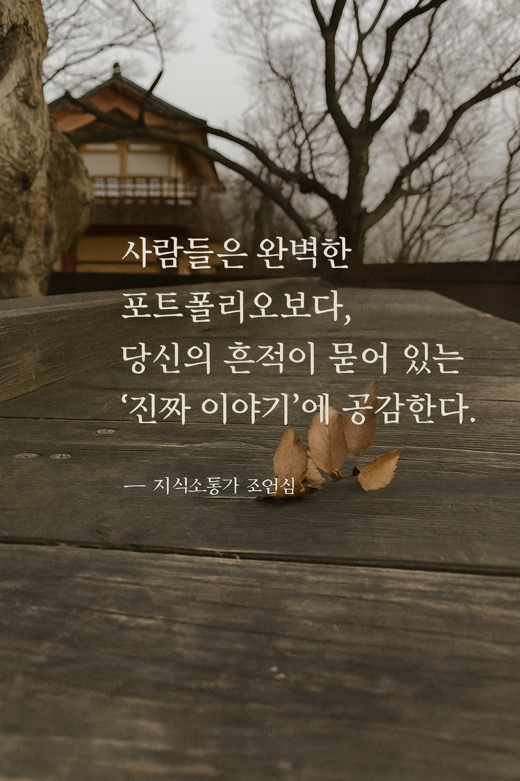 “사람들은 완벽한 포트폴리오보다, 당신의 흔적이 묻어 있는 ‘진짜 이야기’에 공감한다.” — 지식소통가 조연심