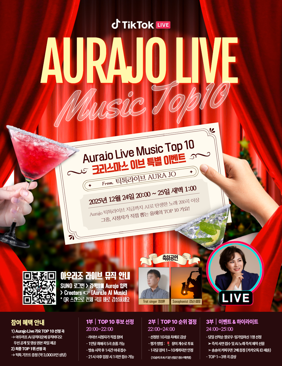 2025.12.24-25 크리스마스 특별 이벤트 <아우라조 AI 가요 Top 10> 선정 틱톡라이브