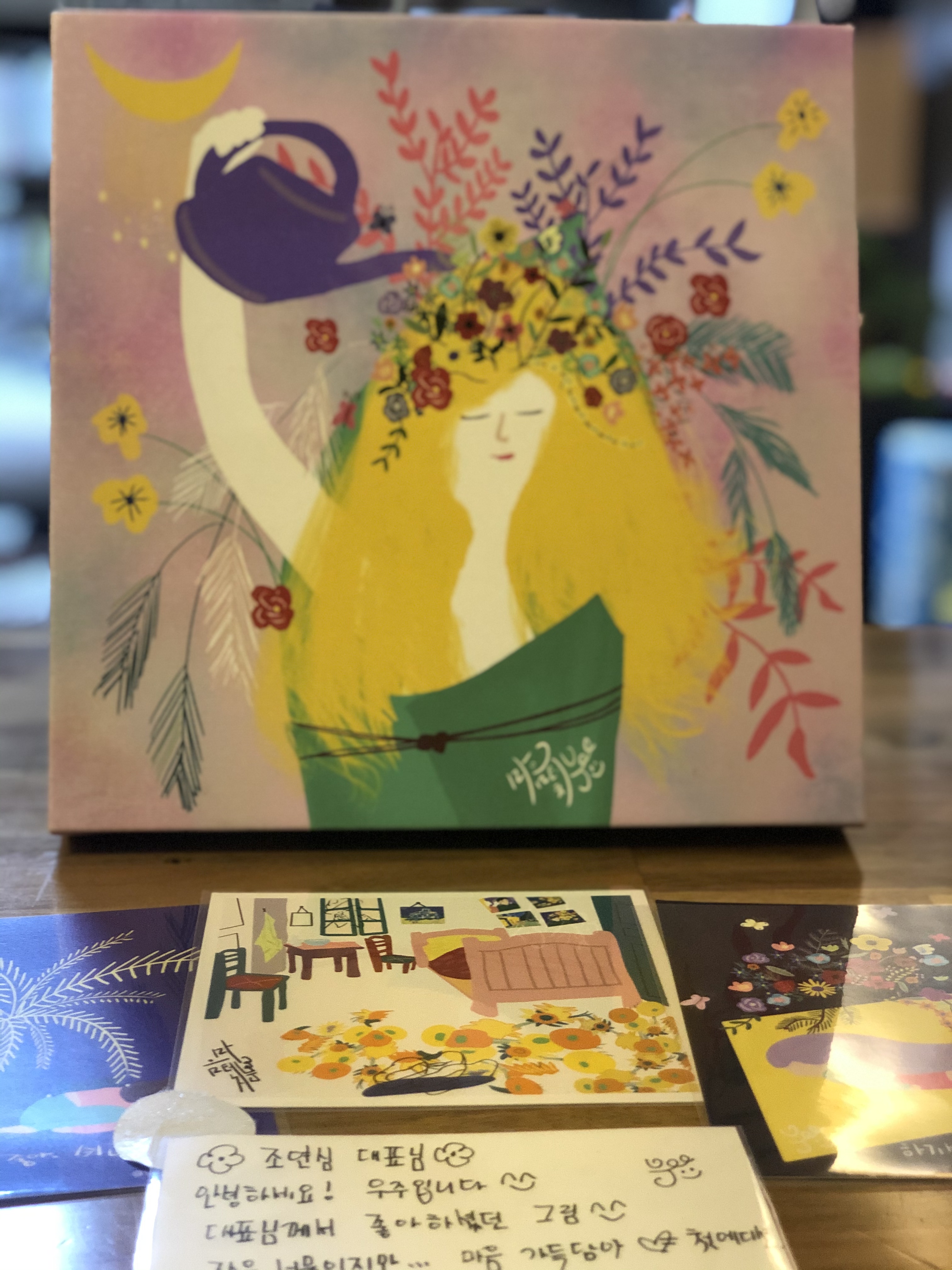넷. 제가 사랑하는 작가님, #우주작가님! 별로 해드린 것도 없는데 제가 제일 좋아하는 그림을 선물로 보내주셨어요. 진짜 이 그림 보고있으면 저절로 나를 사랑하게 되는 거 같아요. 작가님과 오래가는 인연이 되기 위해서라도 저는 진짜 부자로 잘 살아야해요. 그래야 그림도 척척 사 주고, 전시회도 열어주고 그럴 수 있으니까요. 머지않아 그럴 때가 올 거라 확신합니다. 오늘 밤은 너무 행복해서 잠이 오지 않을 거 같아요. ㅋㅋ