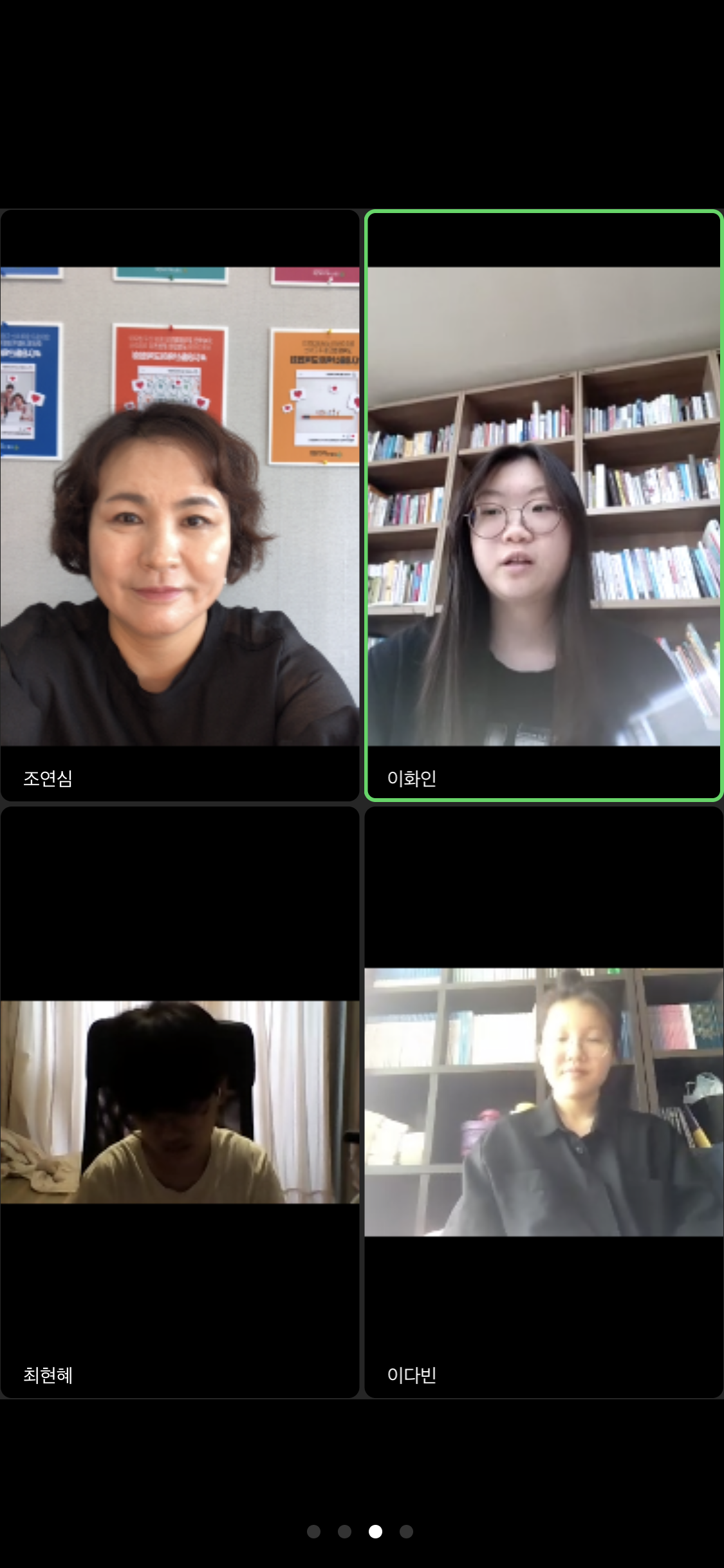 셋, 김형환 교수님이 진행하는 열정캠프 고등부 인터뷰 시간! 줌으로 진행되었던 이 시간에 저는 새로운 가능성을 확인했답니다. 자신의 꿈을 이야기하고, 질문을 만들어내고, 스스로 계획을 세우고 당당하게 자기를 드러내는 중3, 고1 학생들을 보니 대한민국의 미래가 밝다는 생각이 들었답니다. 이런 멋진 학생들을 만나게 해 주신 김형환 교수님, 감사합니다.