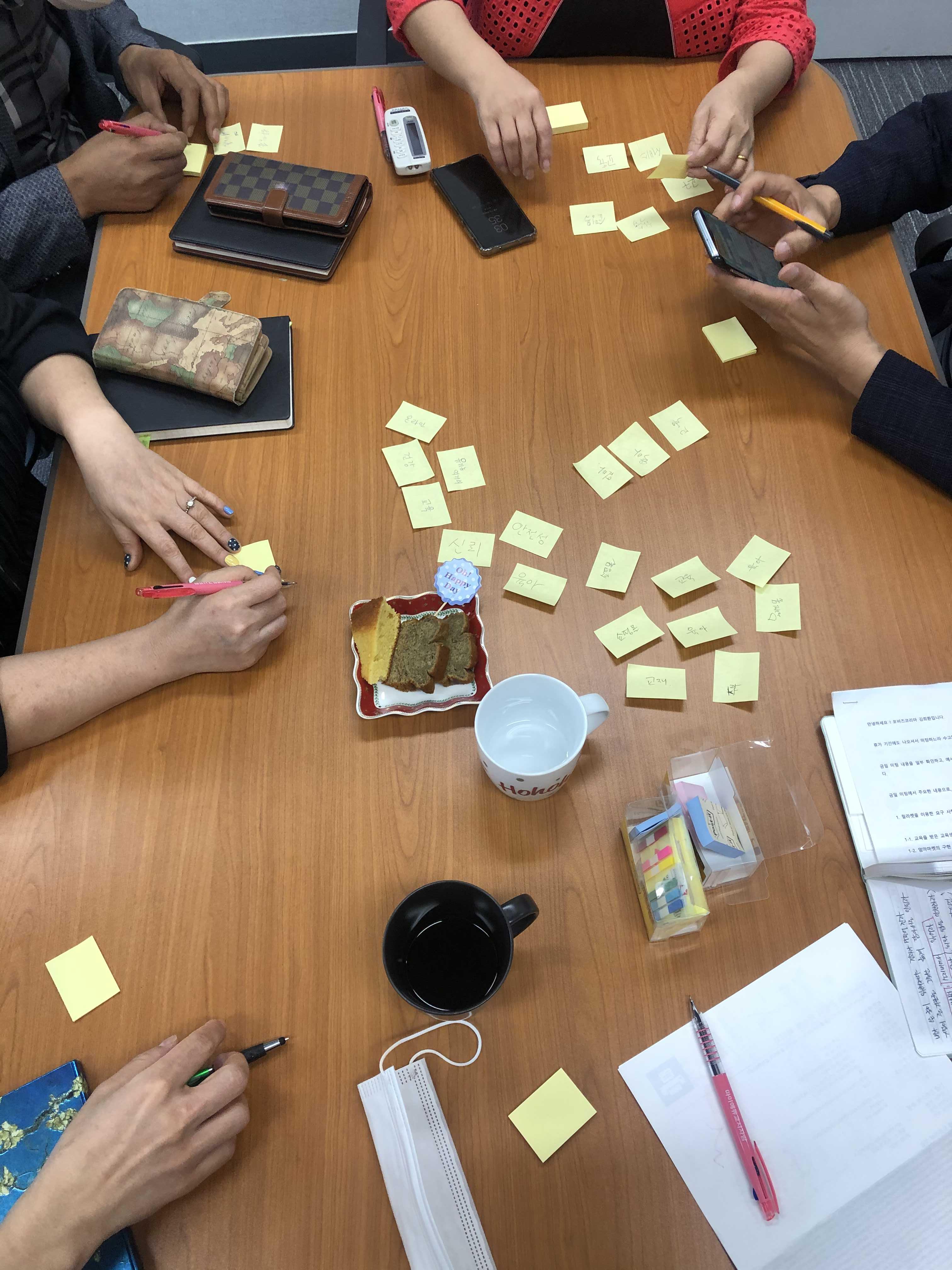 사람들의 아이디어에 각자 생각하는 컨셉을 공유하며 점차 명확한 포지셔닝 키워드를 찾아가는 과정이 FAB 워크숍의 핵심이네요. 오늘 찾은 #엄마마켓 FAB 소개포수터는 곧 공개할게요.