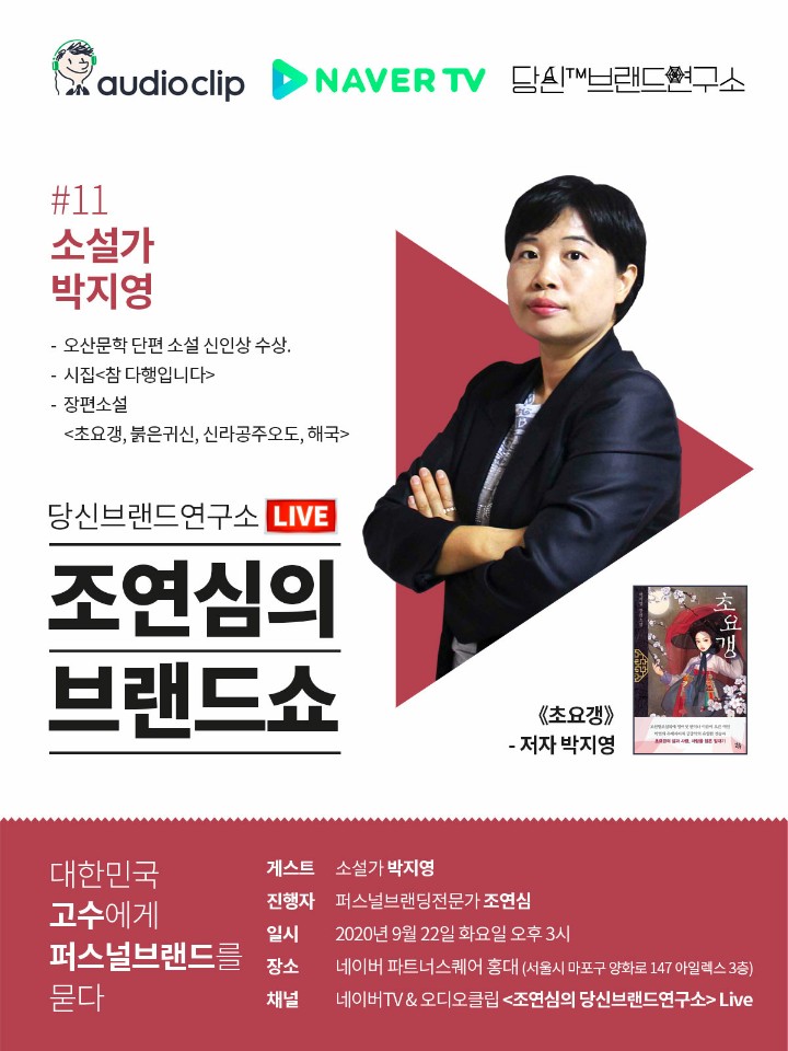 하나, 네이버 오디오클립 #당신브랜드연구소 #조연심의브랜드쇼 오늘 게스트 #소설가 #박지영 #초요갱