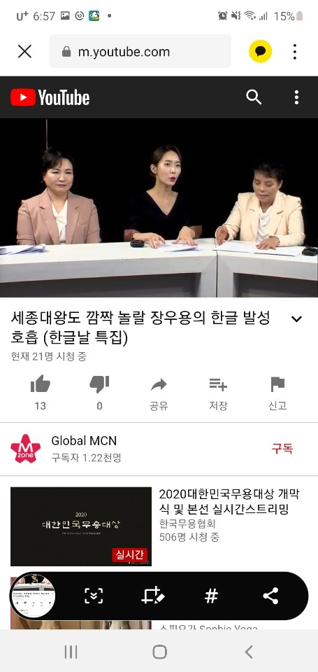 둘, 한글날 특집 라이브 방송했어요. #한글호흡창시자 #장우용 원장님과 관련 분들이 모여 유튜브 라이브로 #한글발성호흡에 대해 이야기하고 왔어요. 통통튀며 이야기 잘했다고 담부턴 그냥 진행자 하랍니다. ㅋㅋ 진행병이 도져서 결국 일을 만들었네요.