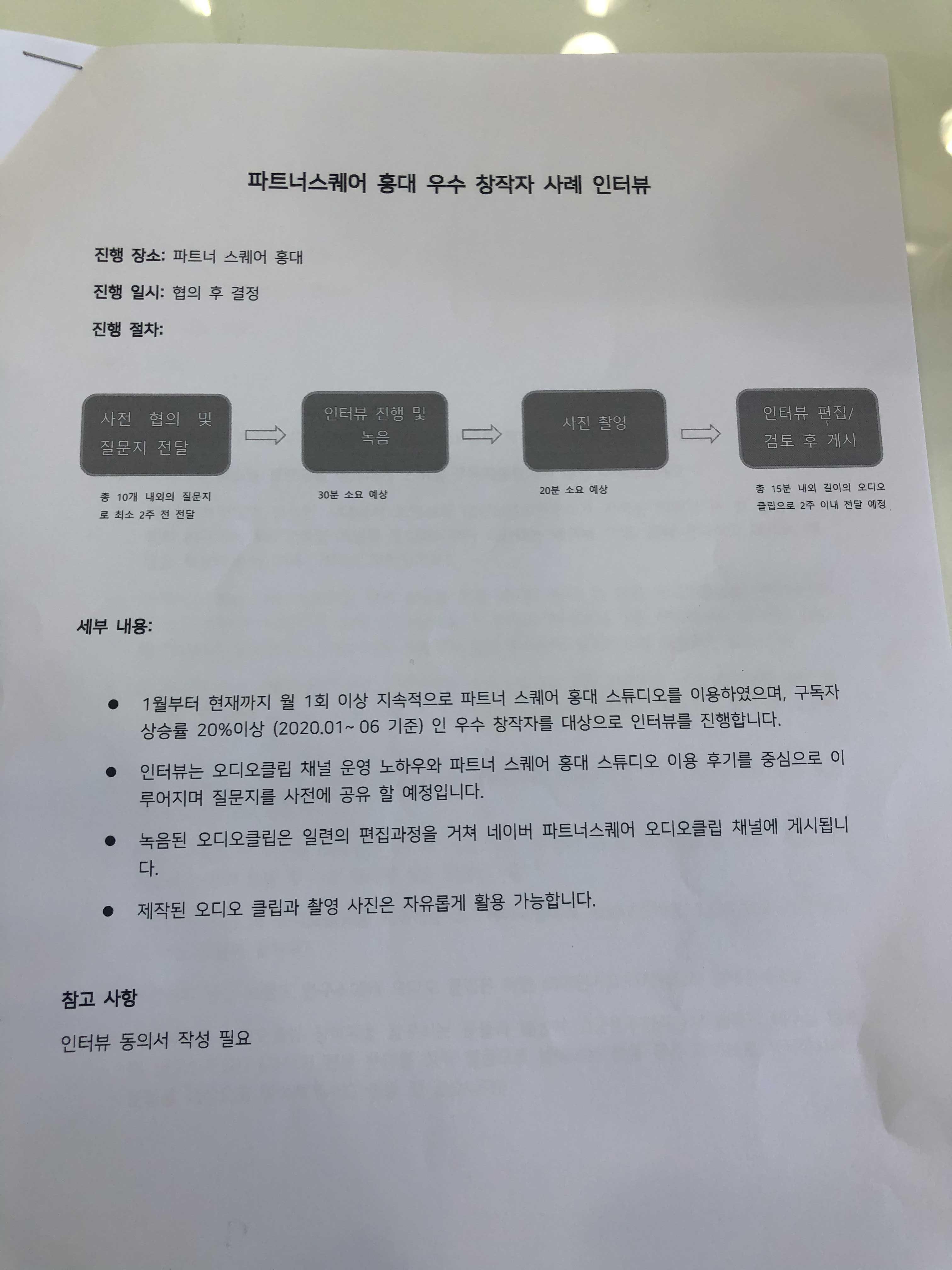 네이버 파트너스퀘어 홍대 우수 창작자로 선정되어 공식 인터뷰를 하게 되었습니다.
