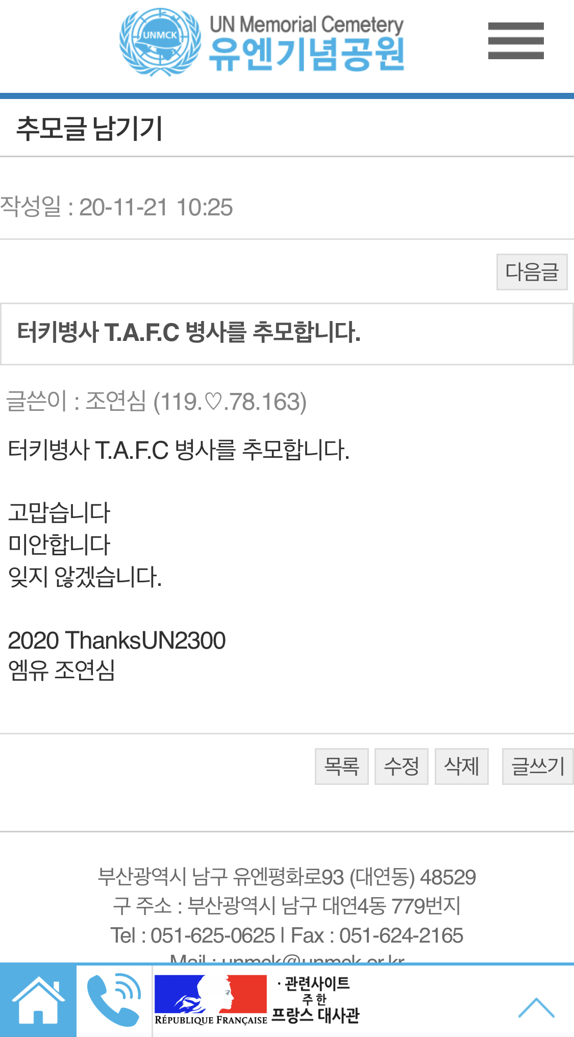 (#2일차 #2020ThanksUN2300 #7일간의추모 #고맙습니다 #미안합니다 #잊지않겠습니다 #부산유엔공원 태그 필수)