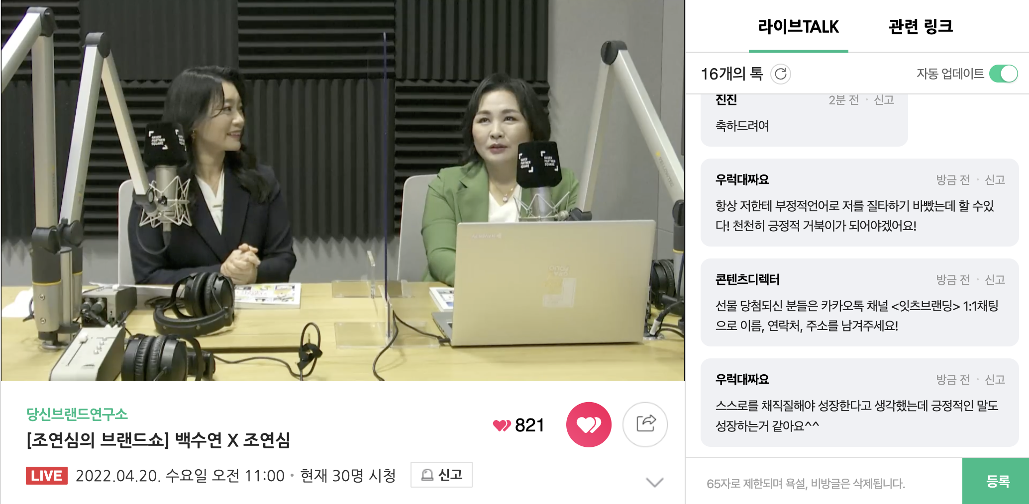 네이버 오디오클립& 네이버TV 당신브랜드연구소 #조연심의브랜드쇼 게스트 #백수연 작가 편