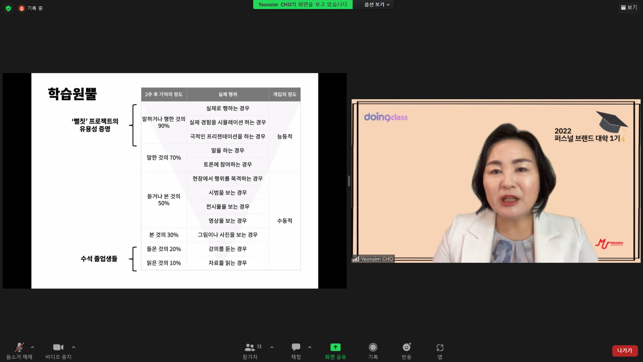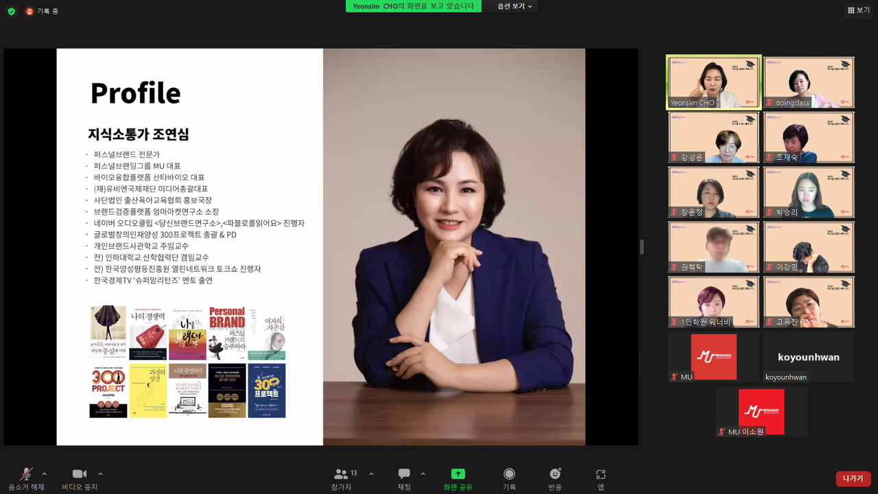 2022 퍼스널브랜드대학 1기 1주차 OT 및 조연심의 오픈특강 / 이지연 진행 / 두잉클래스 x 엠유
