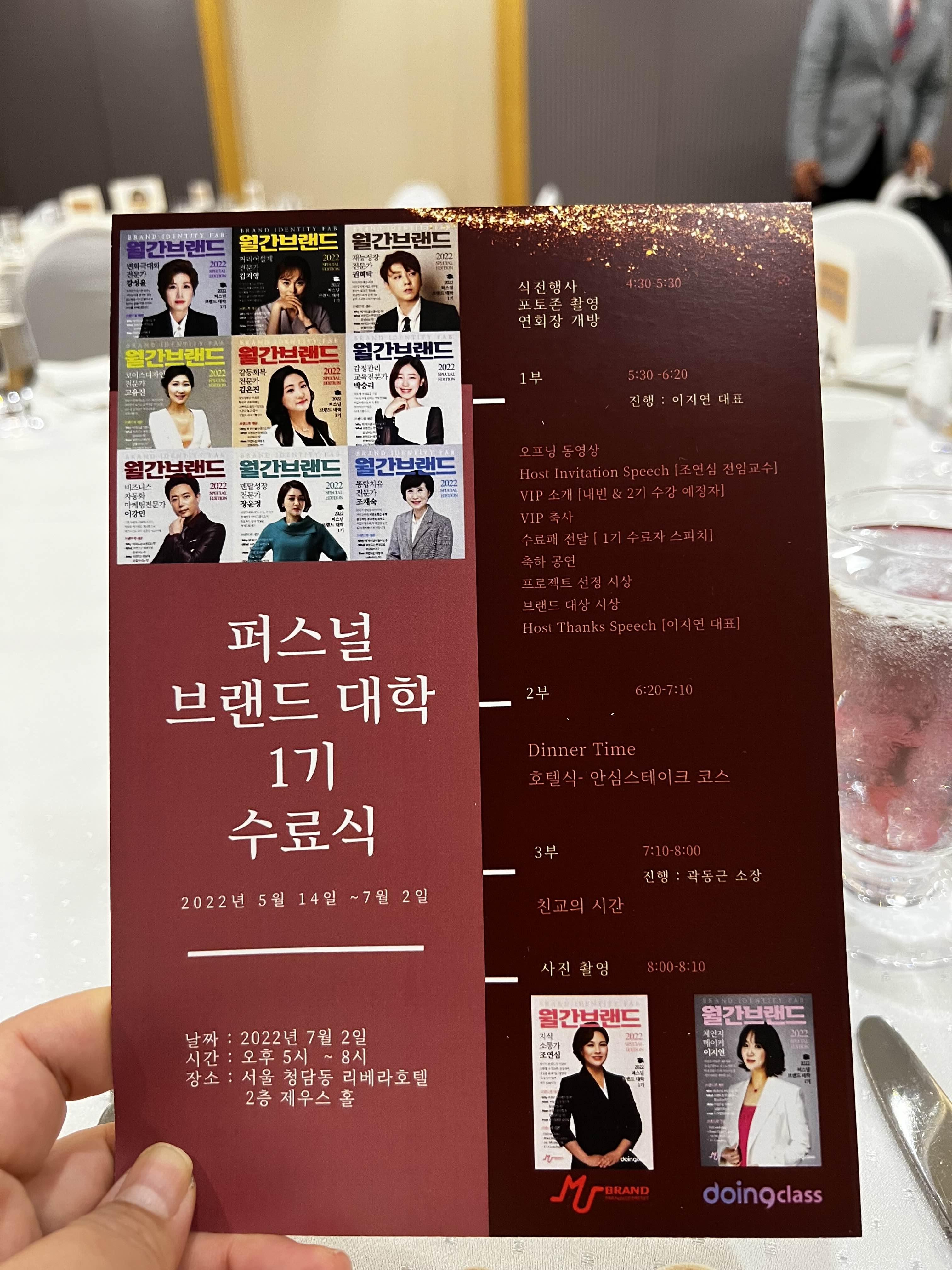 퍼스널브랜드대학 1기 (전임교수 조연심) 졸업수료식 성료 @리베라호텔 2층 by 두잉클래스 x 엠유