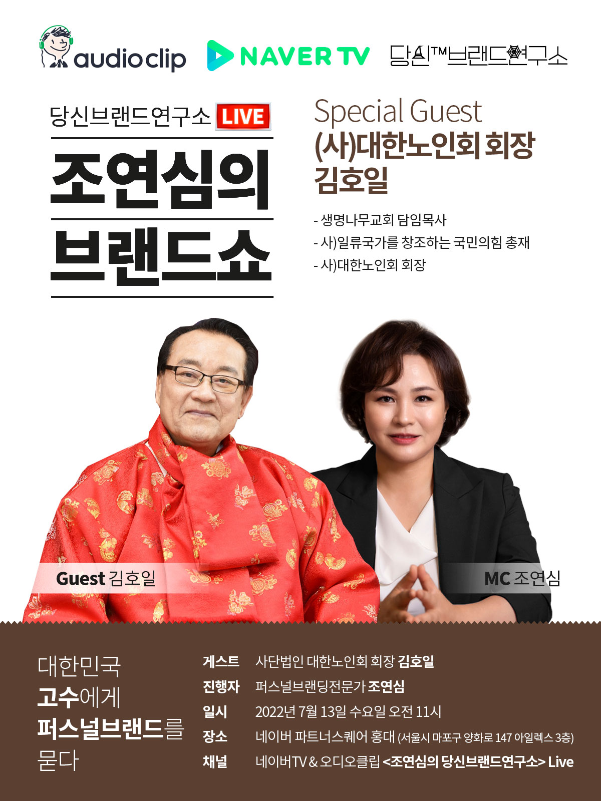 네이버 오디오클립x 네이버TV 당신브랜드연구소 <조연심의브랜드쇼> 대한노인회 김호일 회장 편