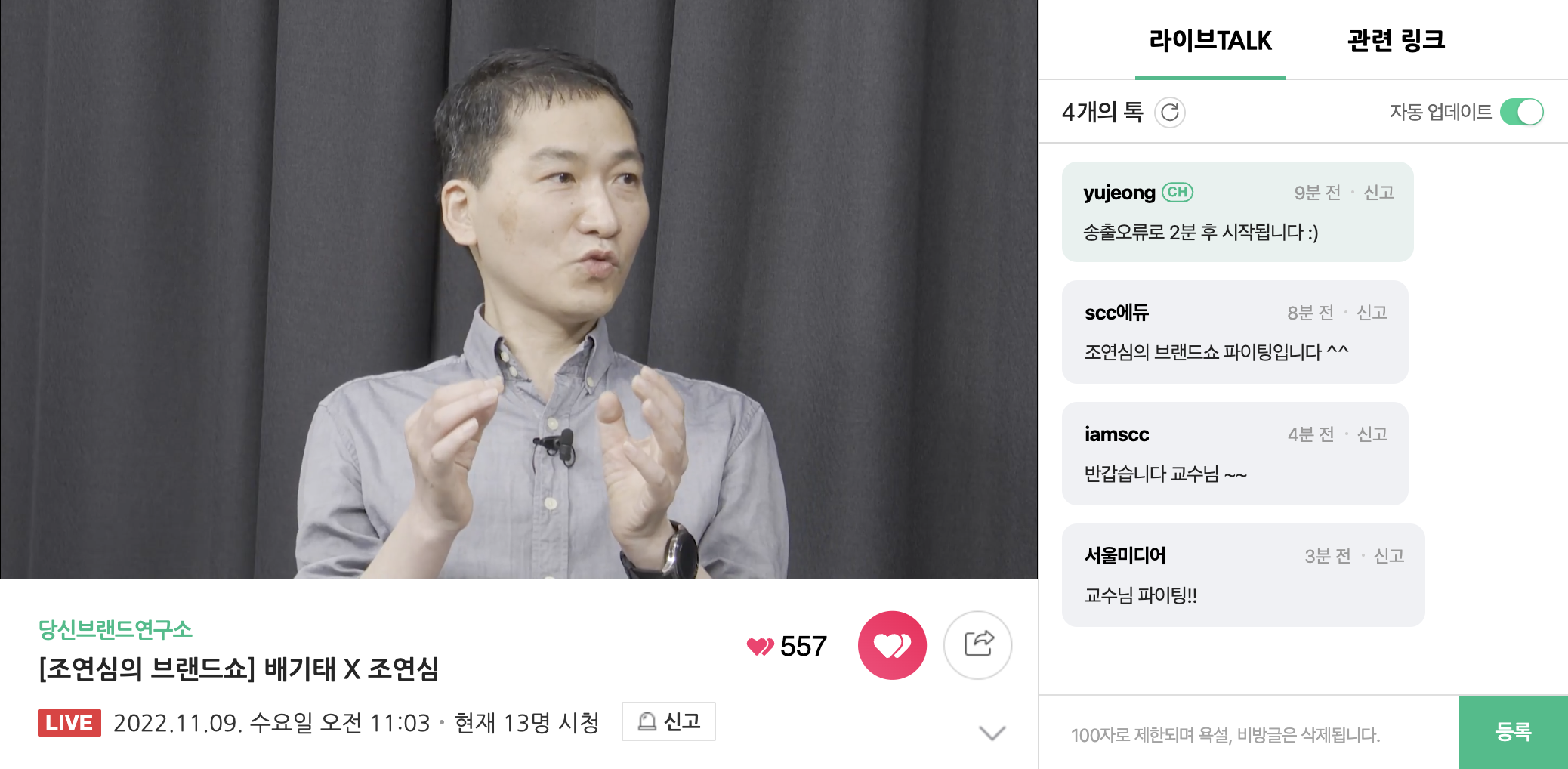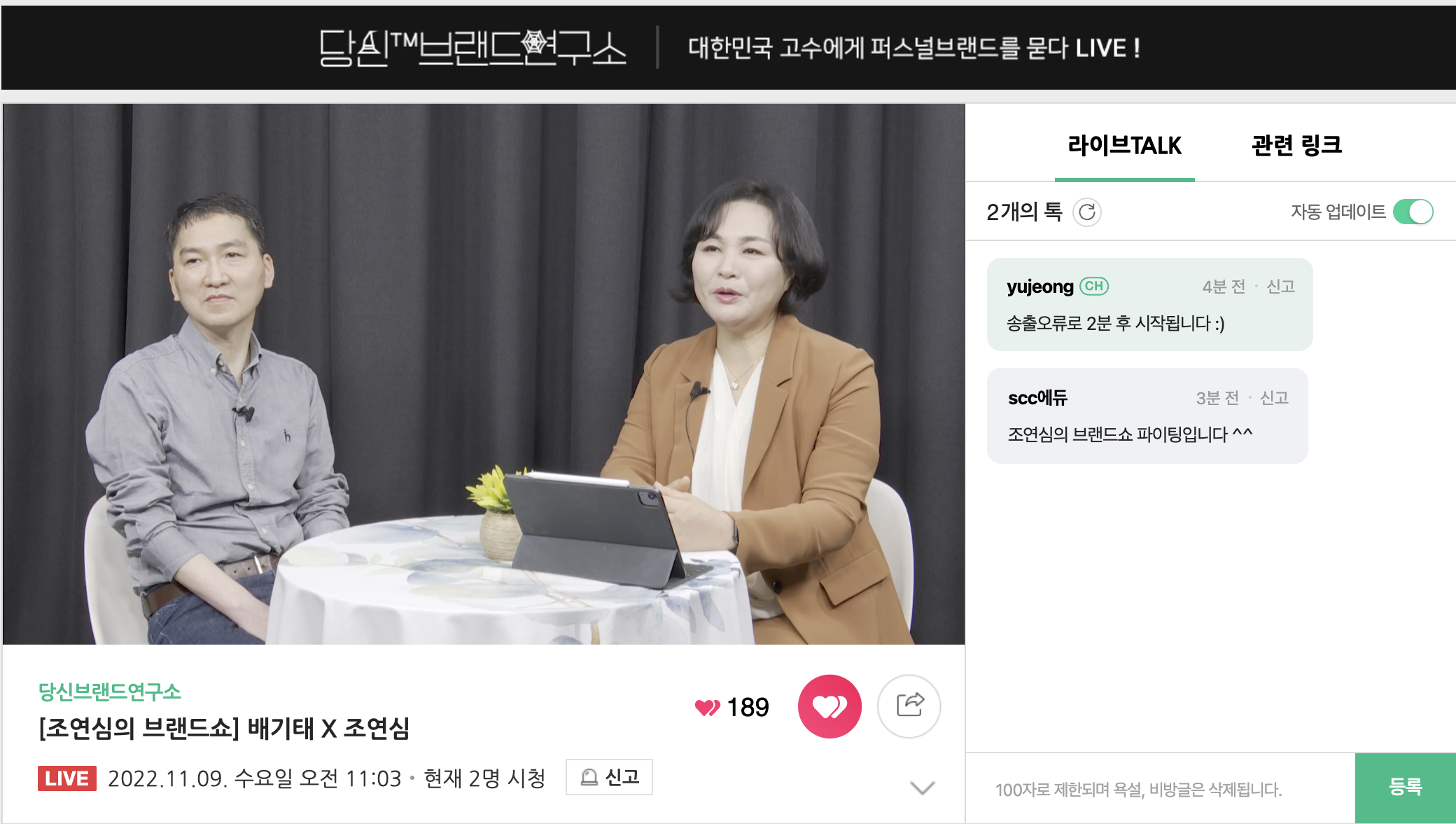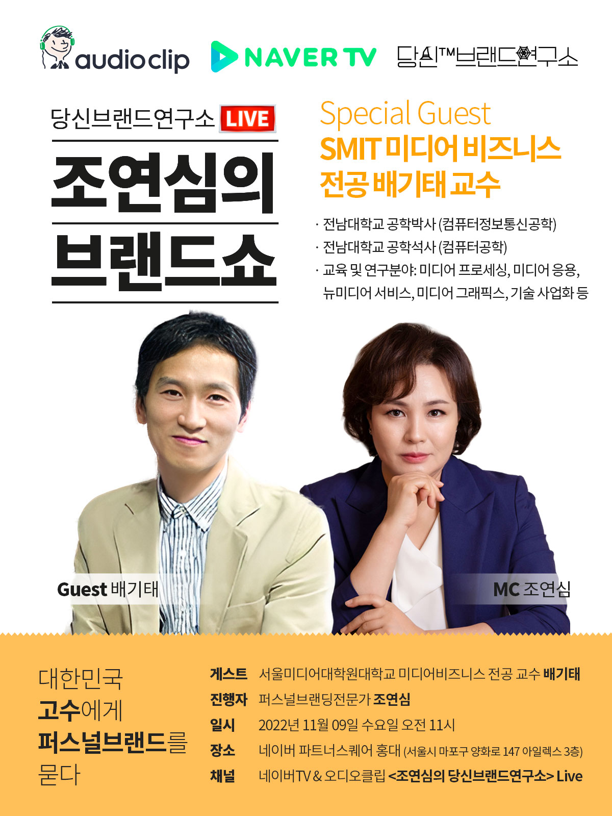 네이버 오디오클립x 네이버TV 라이브[당신브랜드연구소] 조연심의브랜드쇼 - SMIT 배기태 교수 편
