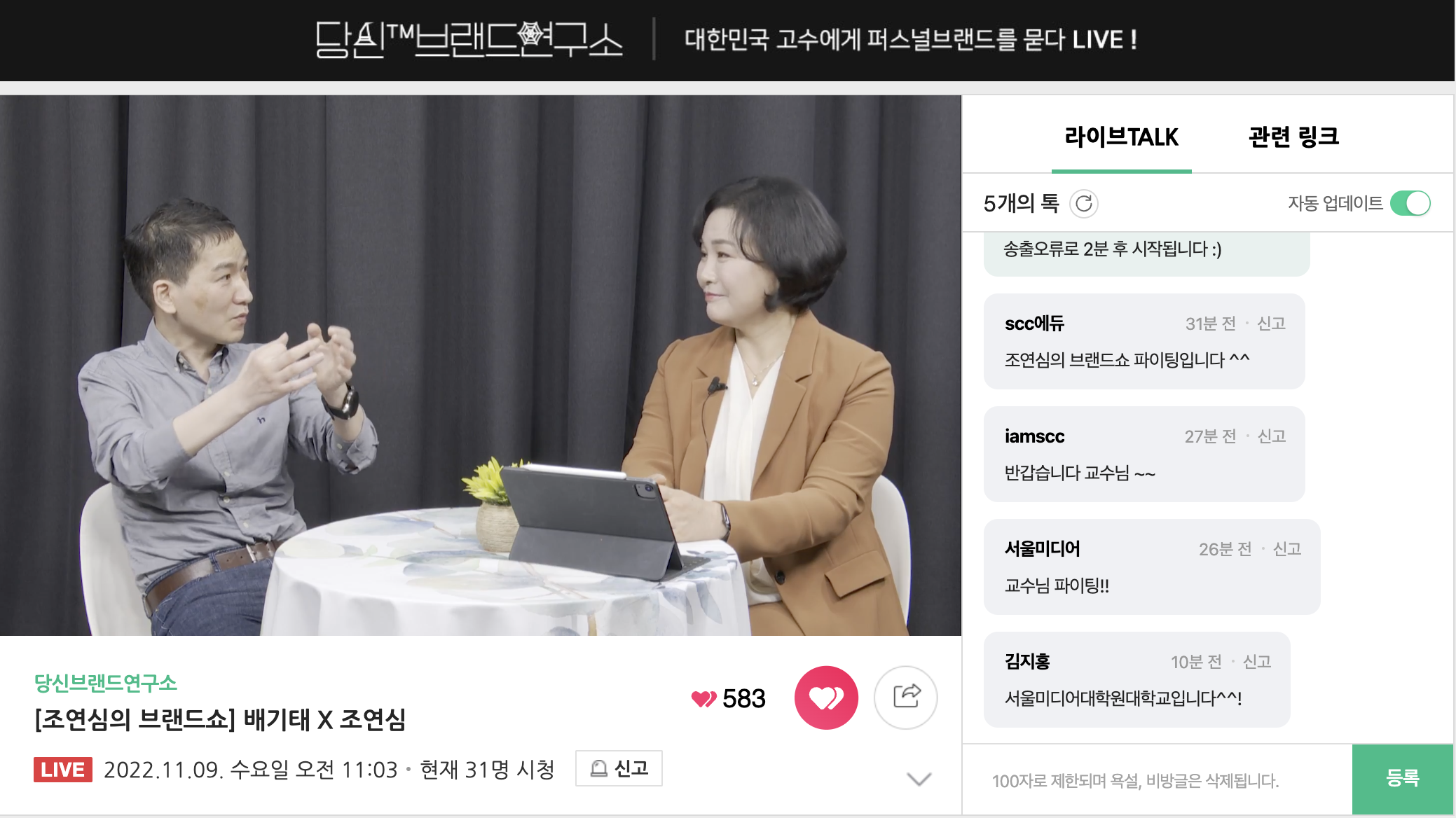 소통인터뷰 & 토크쇼/조연심의 브랜드쇼