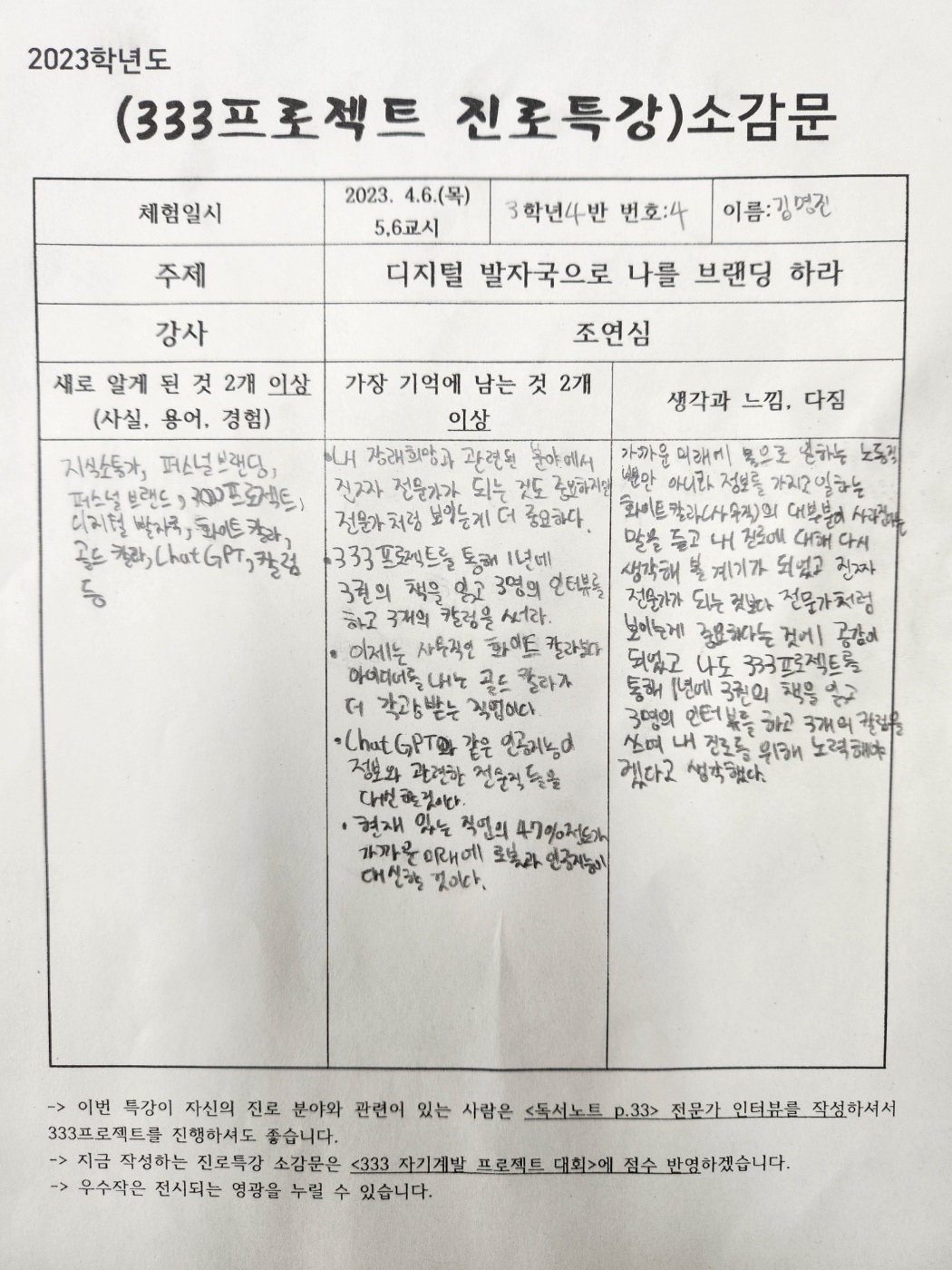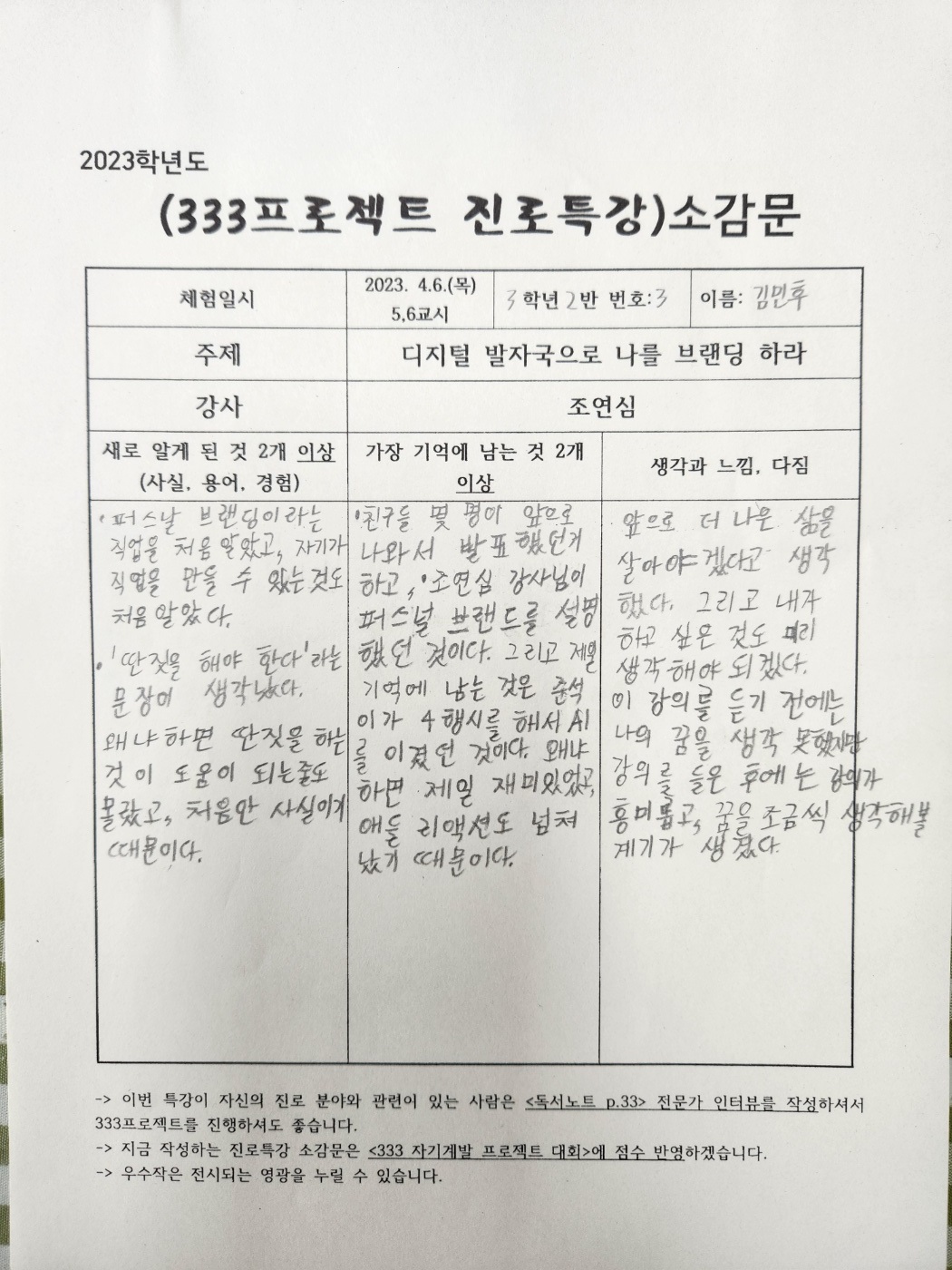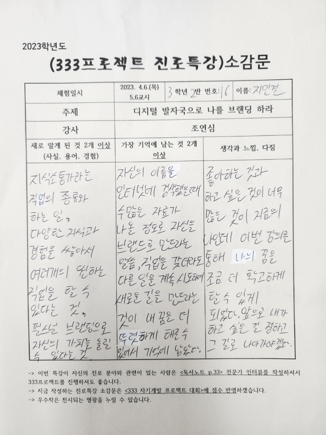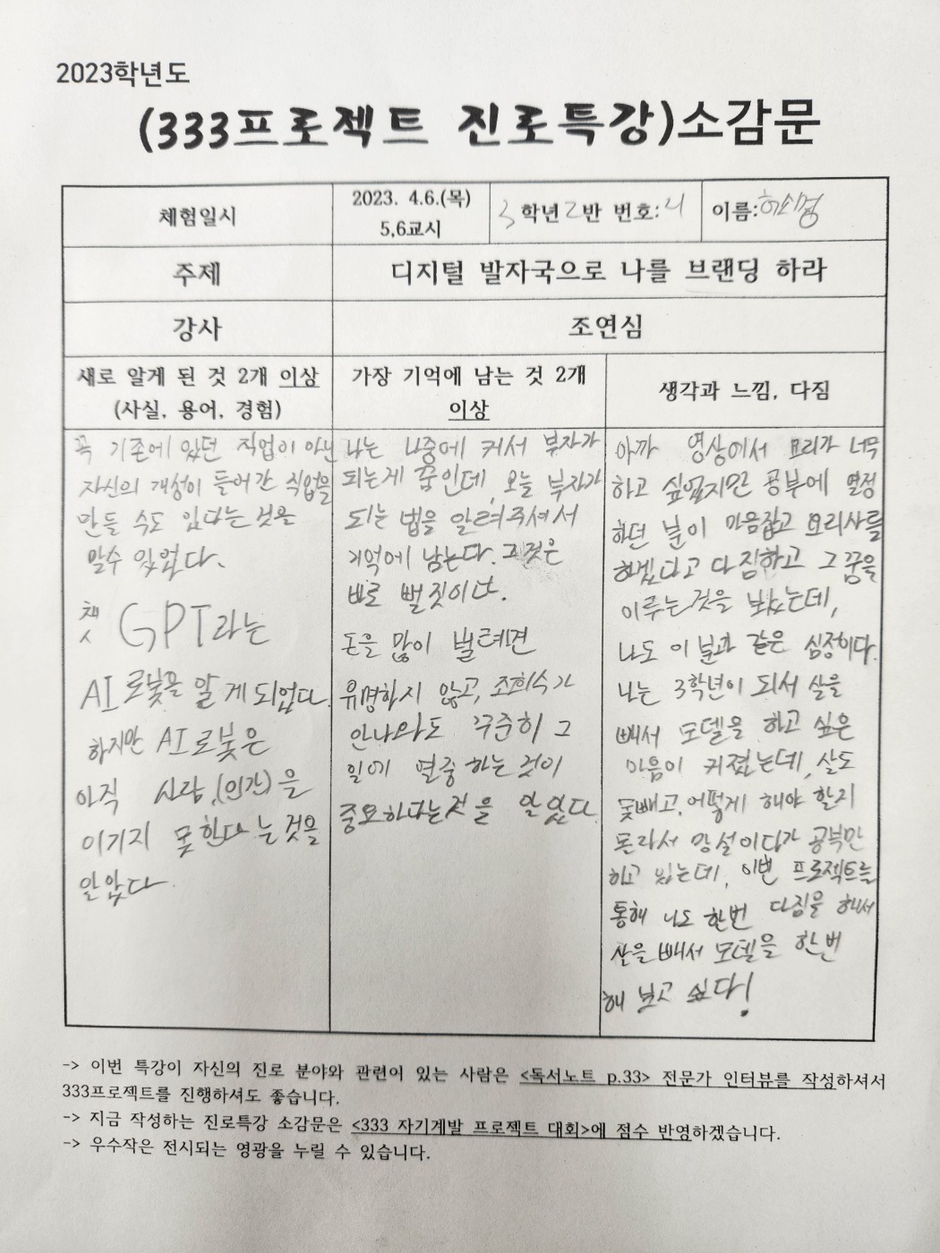 #조연심 #신현중학교 #청소년을위한300프로젝트 #퍼스널브랜딩특강 #333프로젝트 #진로특강