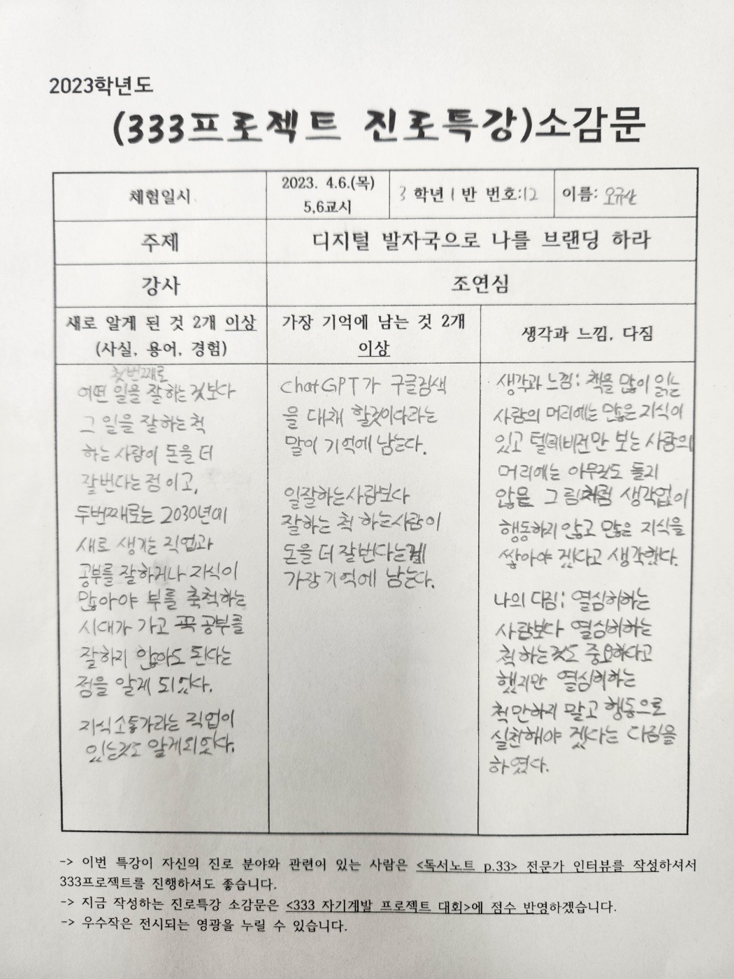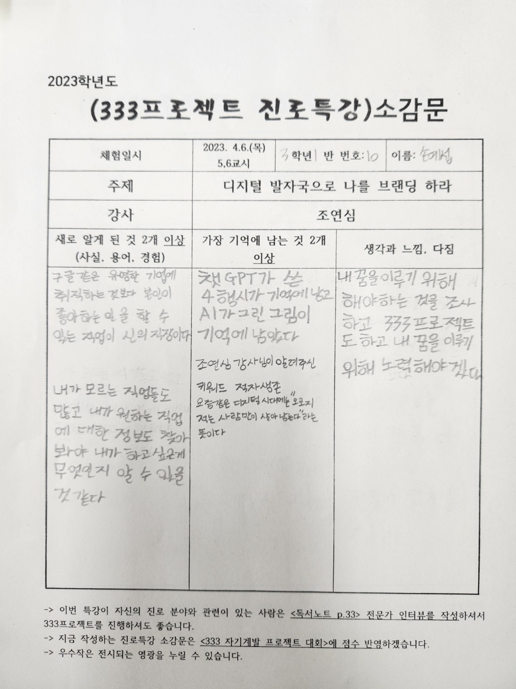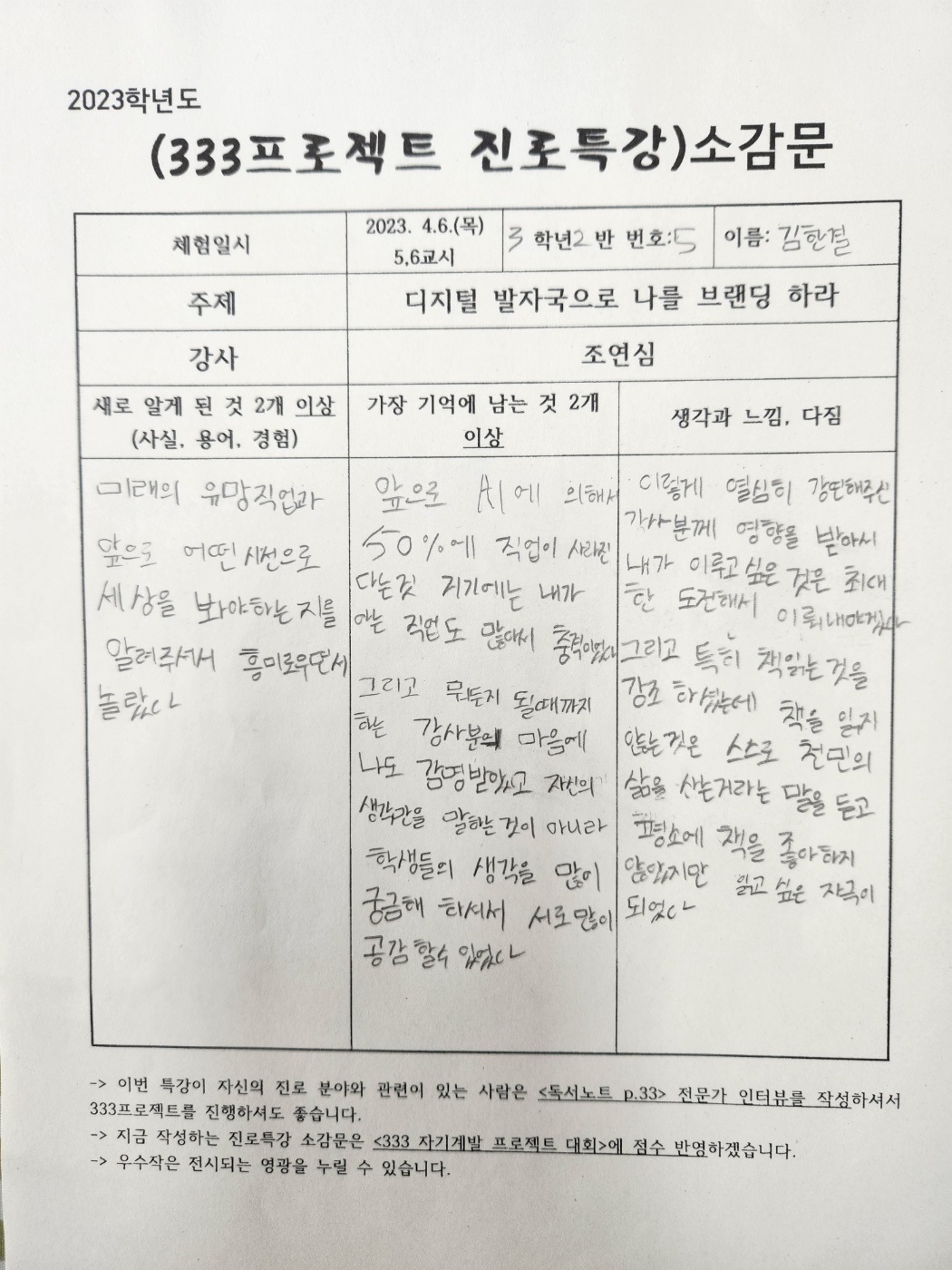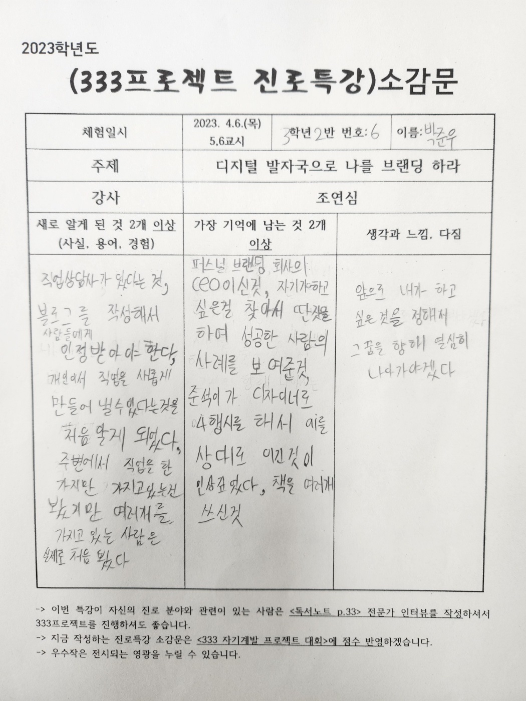 #조연심 #신현중학교 #청소년을위한300프로젝트 #퍼스널브랜딩특강 #333프로젝트 #진로특강