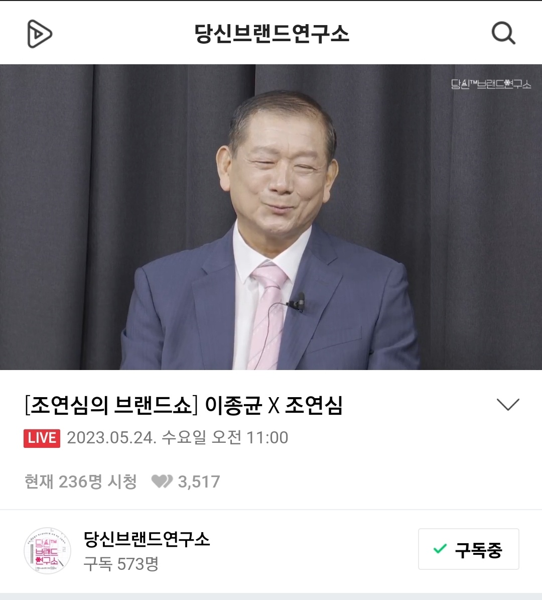 📍채널: 네이버tv & 오디오클립 <당신브랜드연구소> 채널 Live 조연심의브랜드쇼