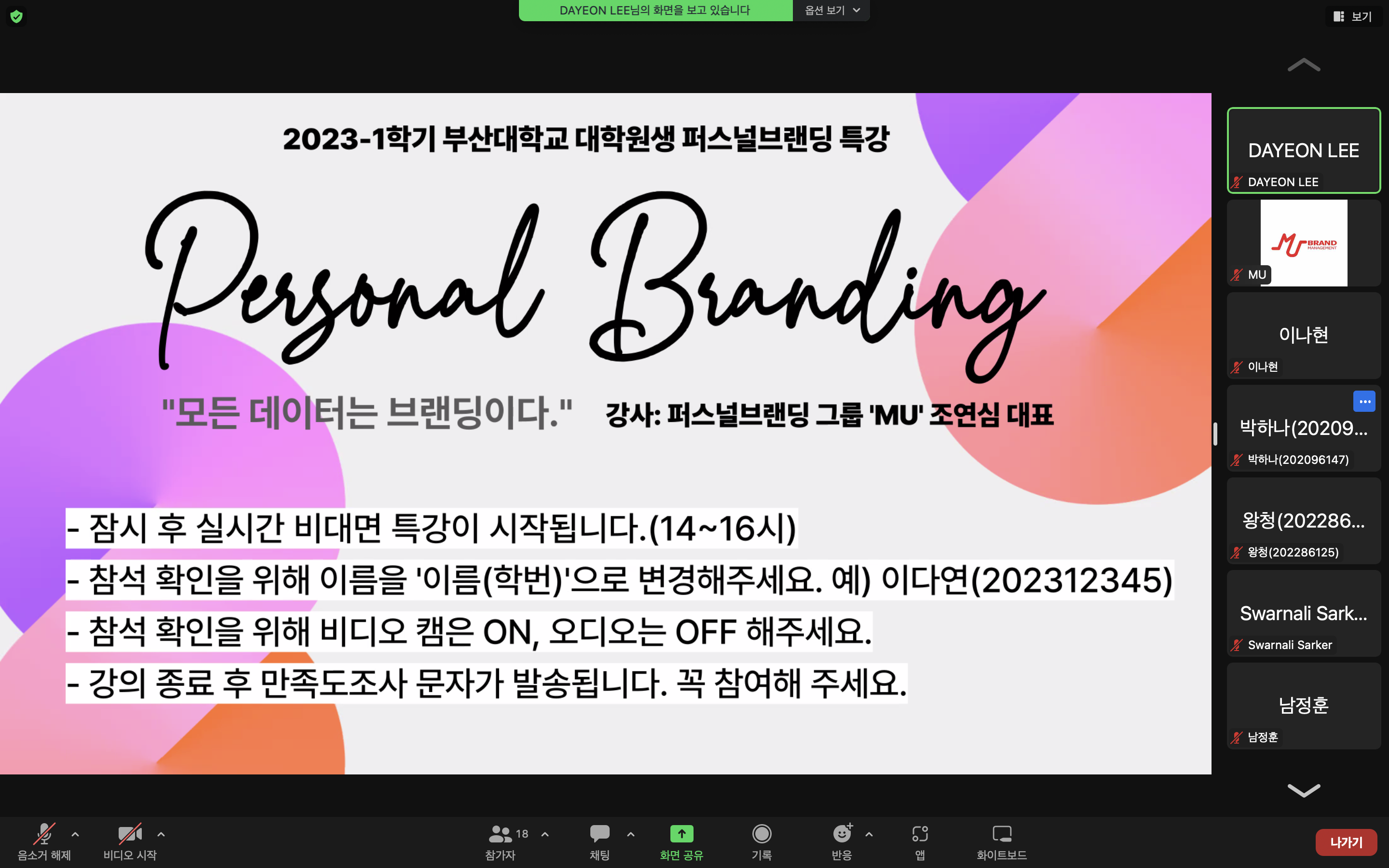부산대학교대학원생 대상 지식소통가 조연심의 퍼스널브랜딩 특강