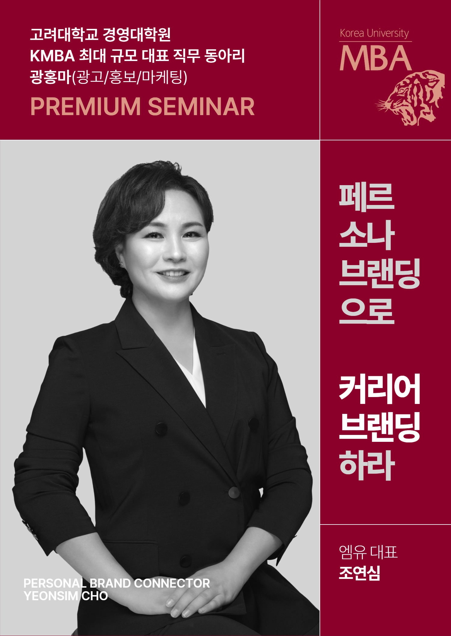 고려대학교 경영대학원 KMBA 최대규모 대표 직무 동아리 광홍마(광고홍보마케팅) 대상 조연심의 퍼스널브랜딩 특강