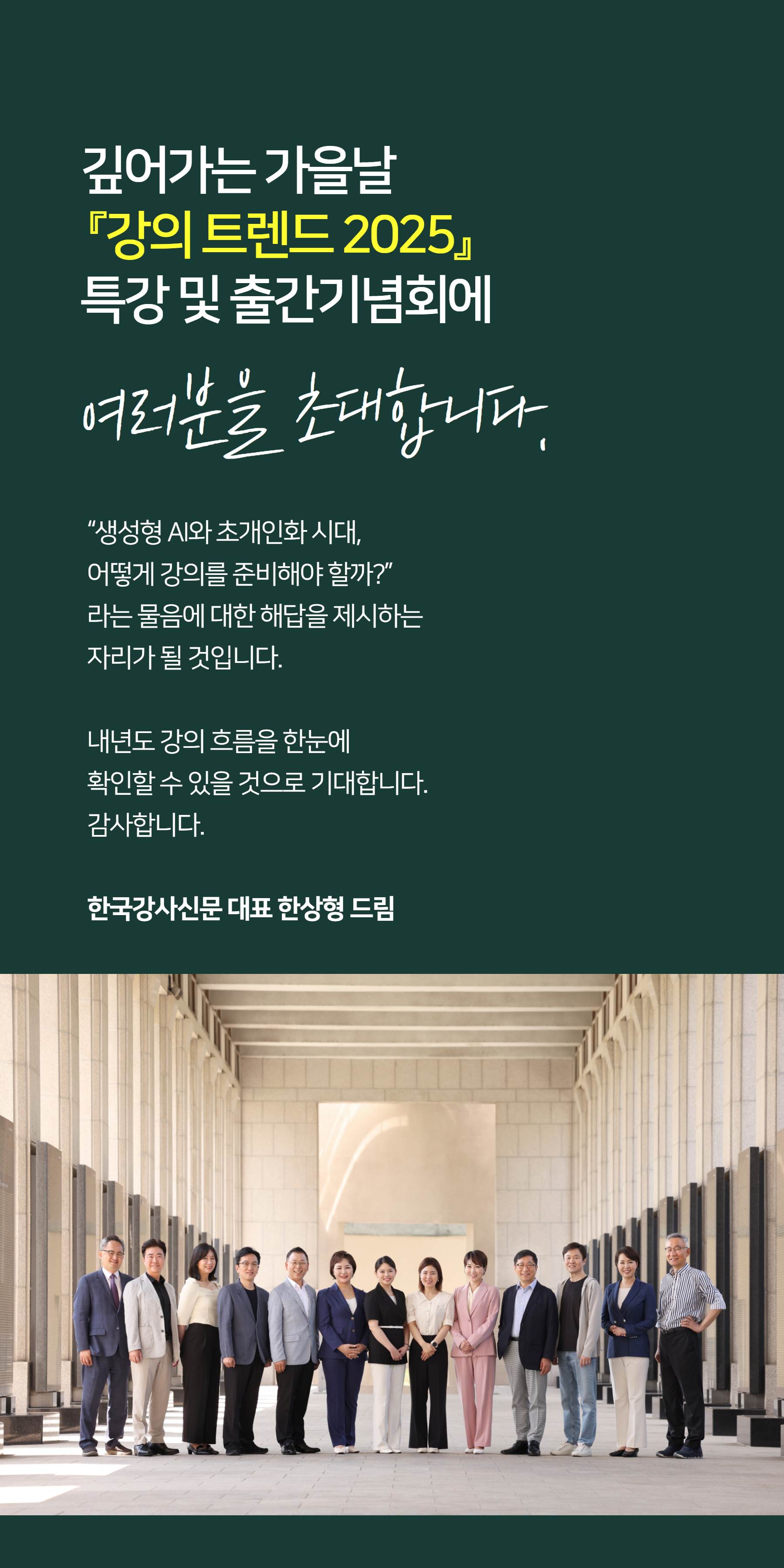 대한민국 강의 트렌드를 전망하는 분석서 및 지침서인 『강의트렌드2025』가 오는 10월 9일(수) 한글날 출간되었습니다.