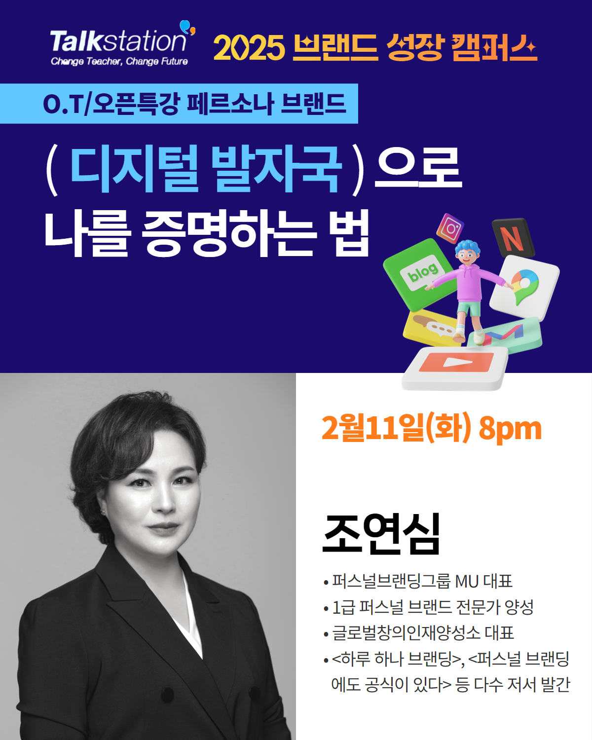 1주차 :디지털 시대의 퍼스널 브랜딩 전략 / 디지털 발자국으로 나를 증명하는 법 (조연심 퍼스널브랜딩그룹 엠유 대표)