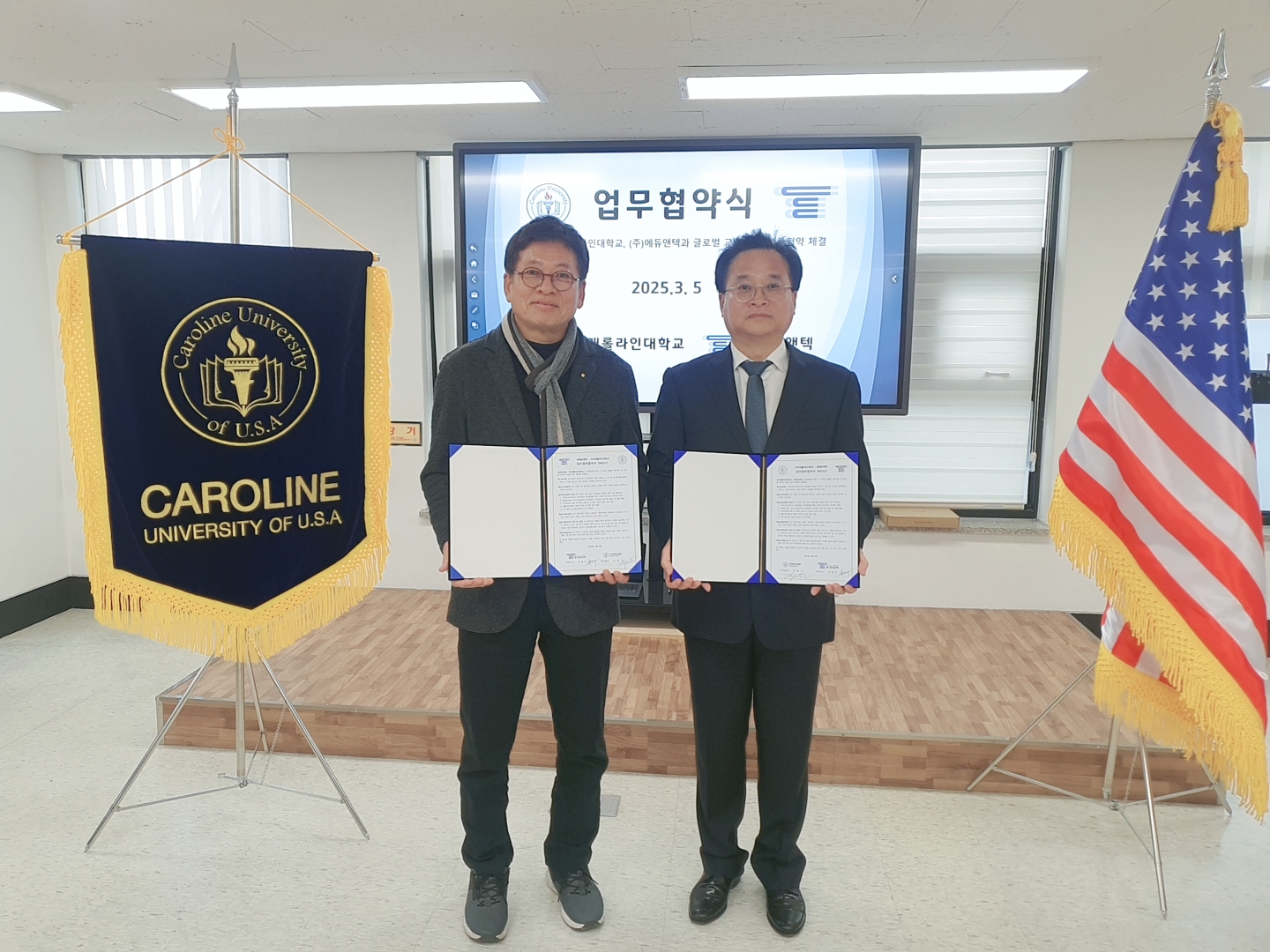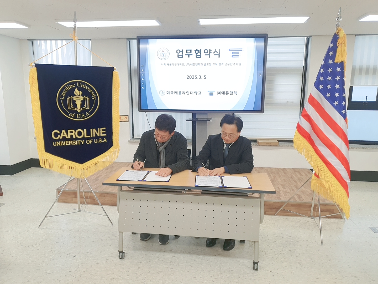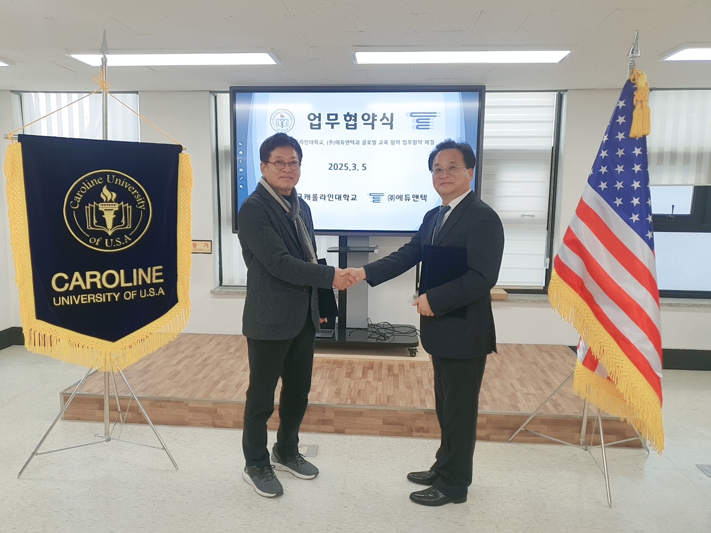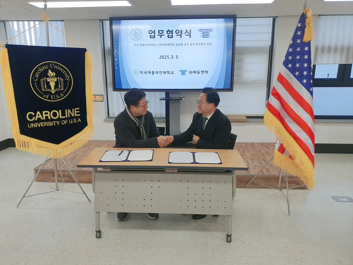 [더코리아저널 전영순 기자] 미국 캐롤라인대학교(American Caroline University, 이하 ACU)와 ㈜에듀앤텍이 2025년 3월 5일, 기업교육 및 평생교육 분야에서의 협력을 강화하기 위해 양해각서(MOU)를 체결했