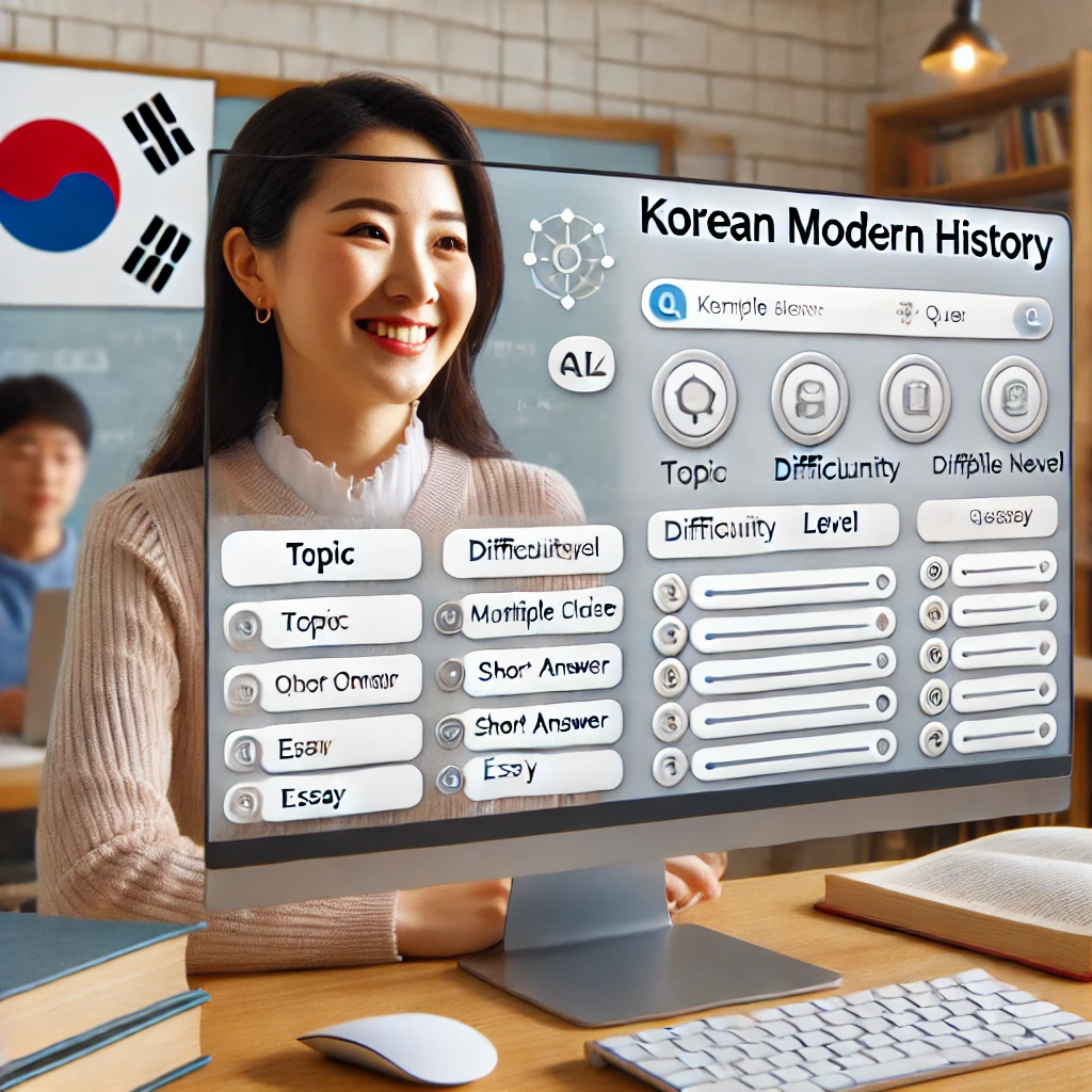 예를 들어, “한국 근현대사에 대한 중학교 2학년 수준의 퀴즈 10문항을 생성해줘”라고 AI에게 지시하면,