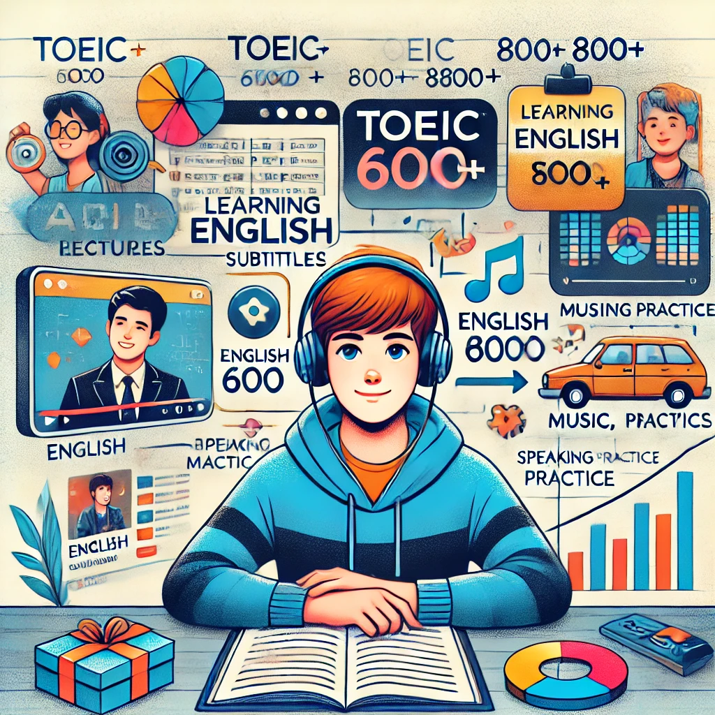 현재 수준은 TOEIC 600점대이고, 목표는 TOEIC 800점 이상과 영어 회화 능력 향상이야.