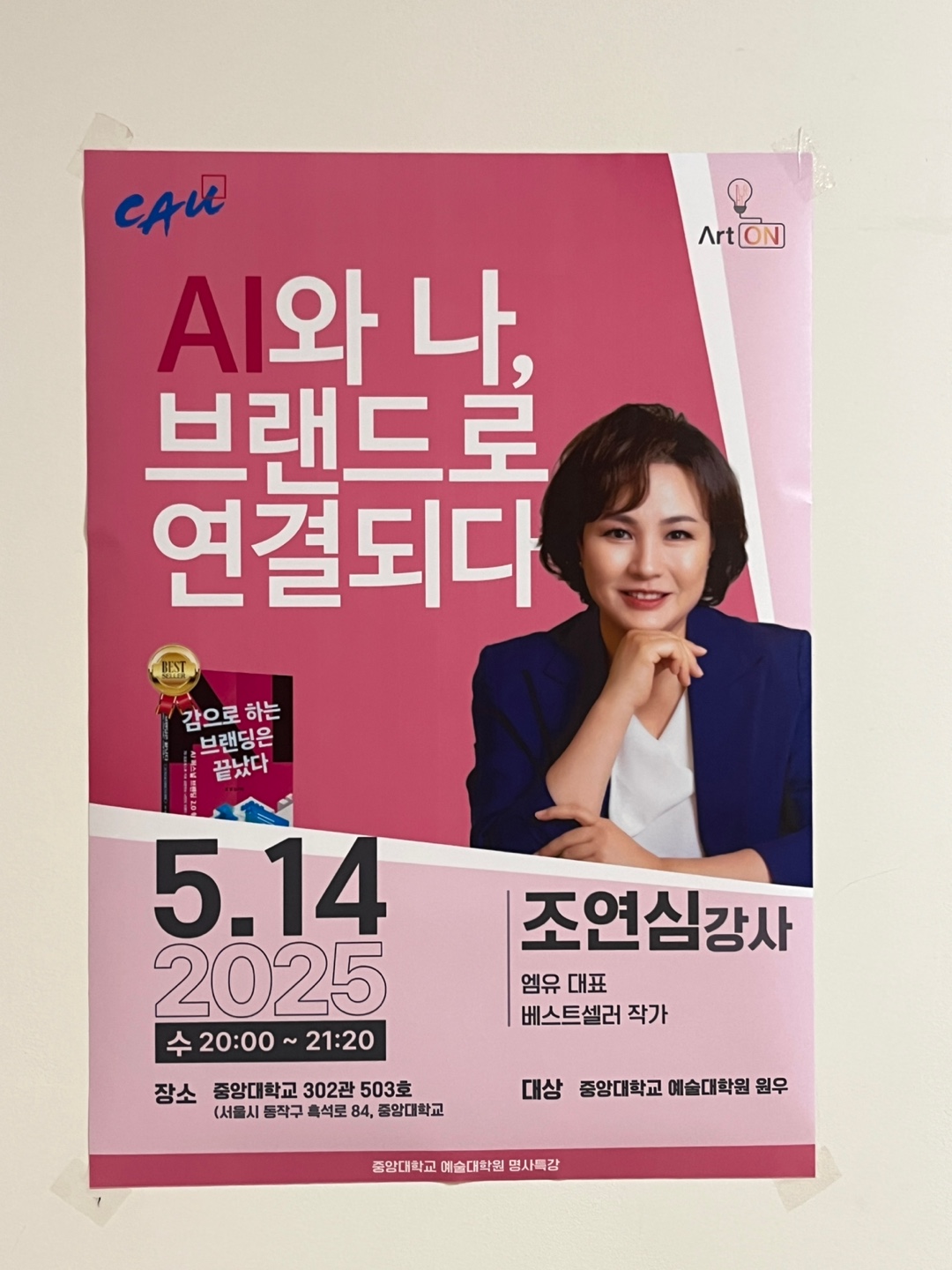 중앙대학교 예술대학원 Art-On 초청 명사특강: [감으로 하는 브랜딩은 끝났다] 조연심 저자 초청 AI 퍼스널브랜딩 2.0전략 특강 성료