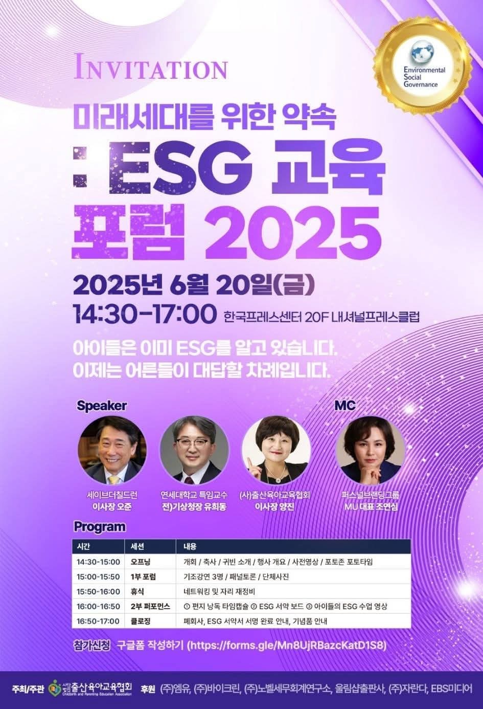 #ESG교육포럼2025 #아이들을위한ESG #유아ESG교육 #출산육아교육협회 #세이브더칠드런 #오준 #유희동 #양진 #mc조연심 #지식소통가 #ESG실천 #미래세대교육 #유아교육ESG #지속가능한교육