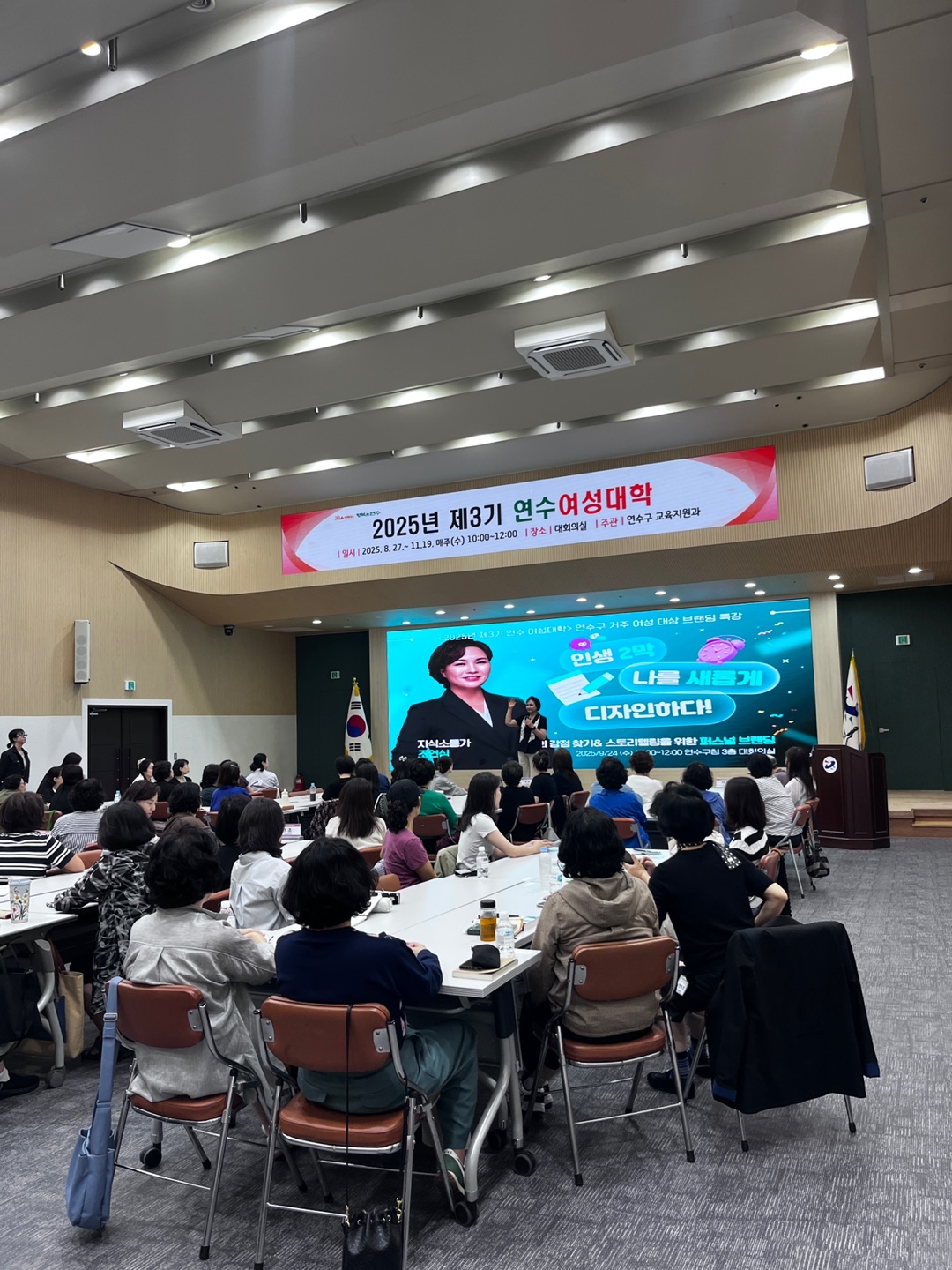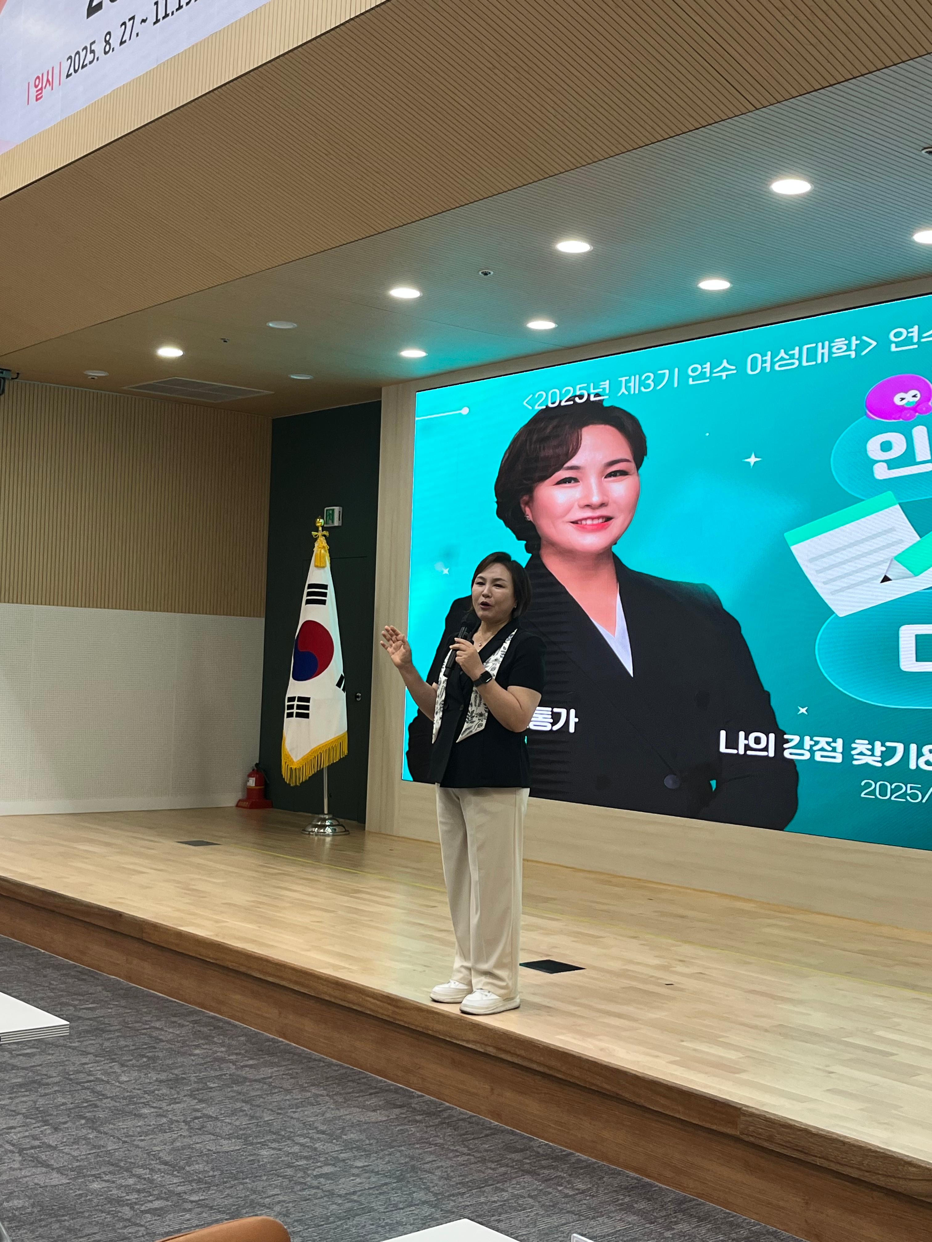 「2025 제3기 연수여성대학」 5회차 강의가 열린 날, 주제는 바로 “인생 2막, 나를 새롭게 디자인하다 – 퍼스널 브랜딩으로 강점 찾기”.