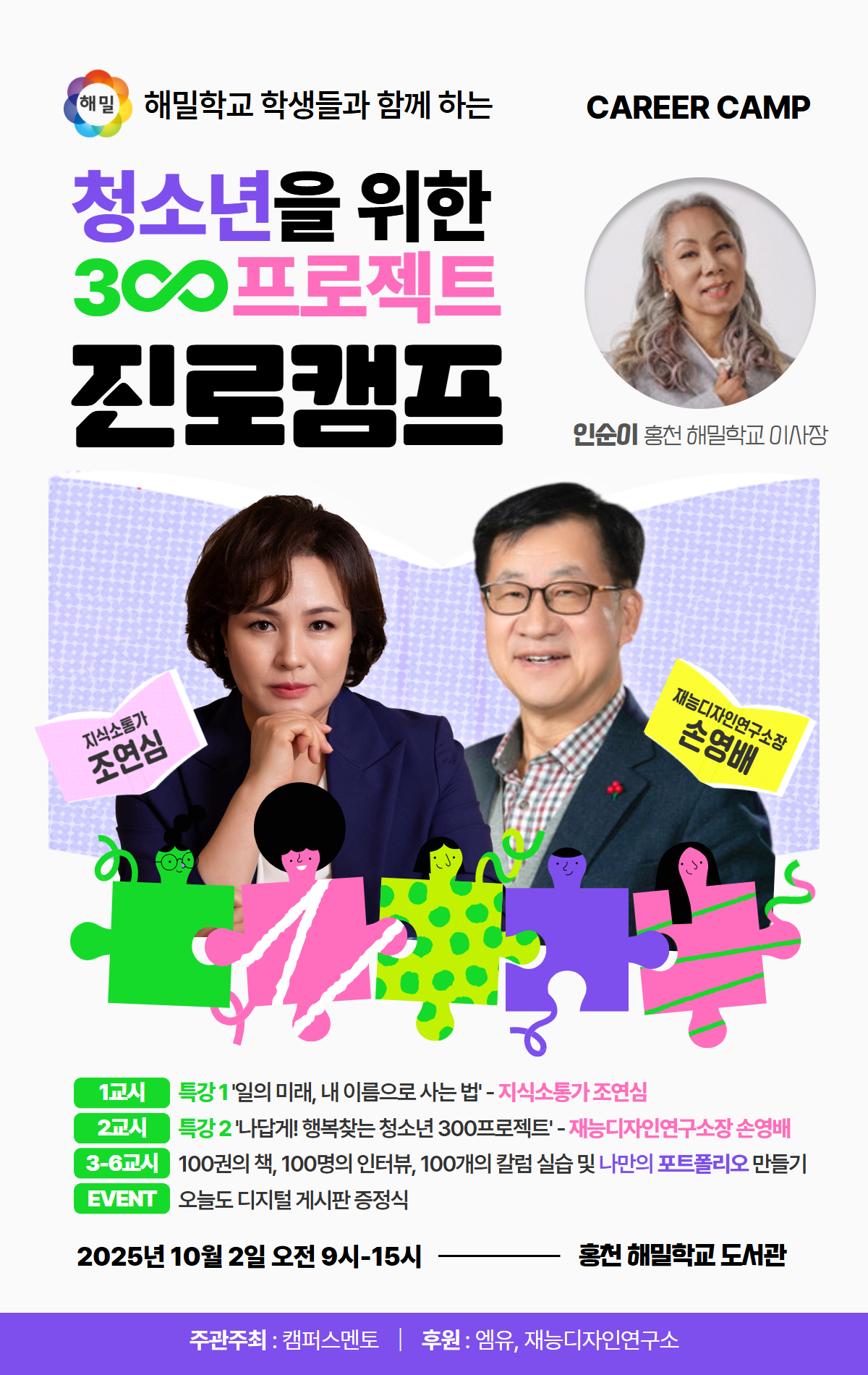 #해밀학교 #진로캠프 #333프로젝트 #청소년진로 #포트폴리오 #퍼스널브랜딩 #홍천 #지식소통가 #조연심 #재능디자인연구소 #손영배 #캠퍼스멘토 #인순이이사장
