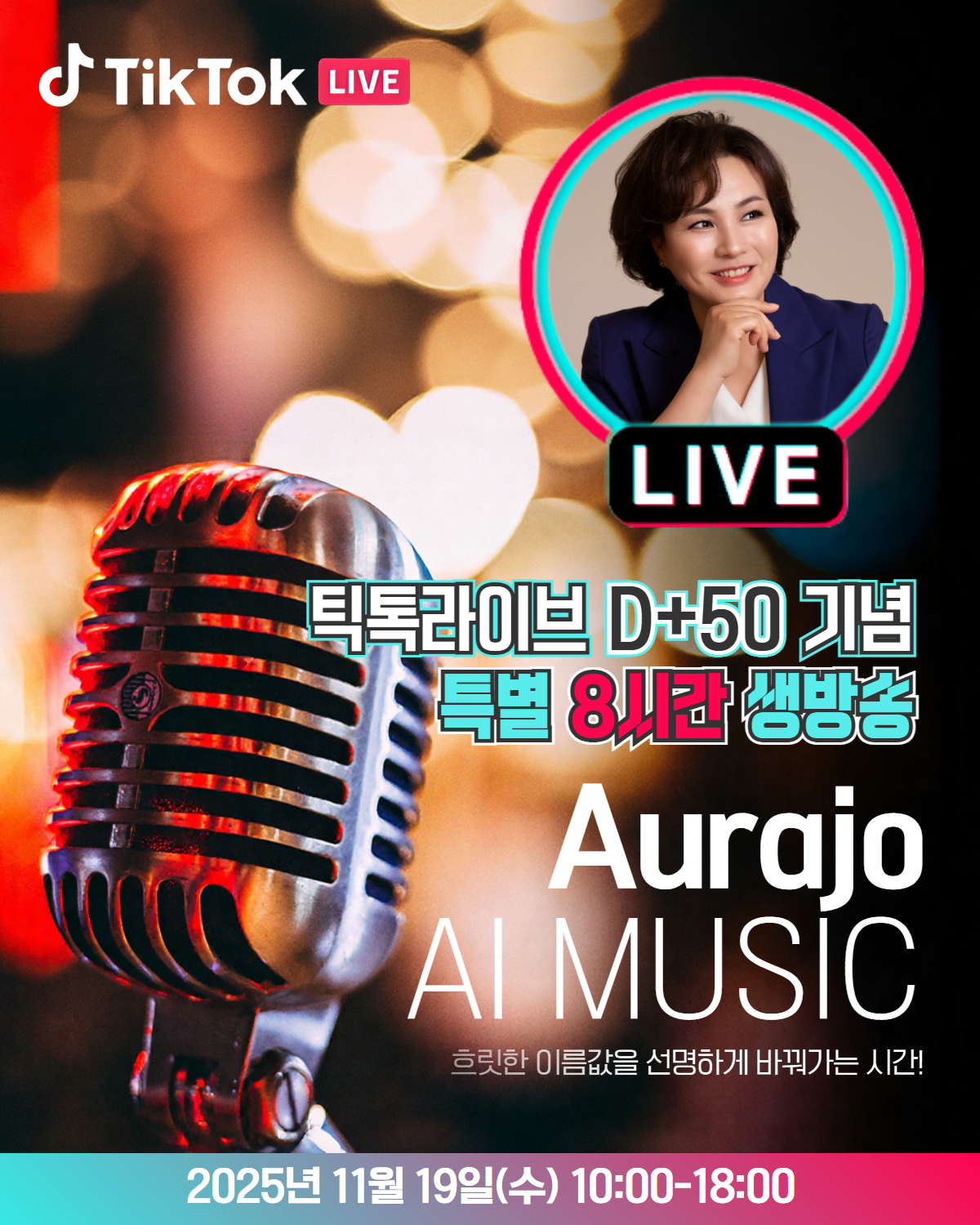틱톡라이브 D+50 기념! 8시간 특별 생방송 – Aurajo AI MUSIC by 지식소통가 조연심