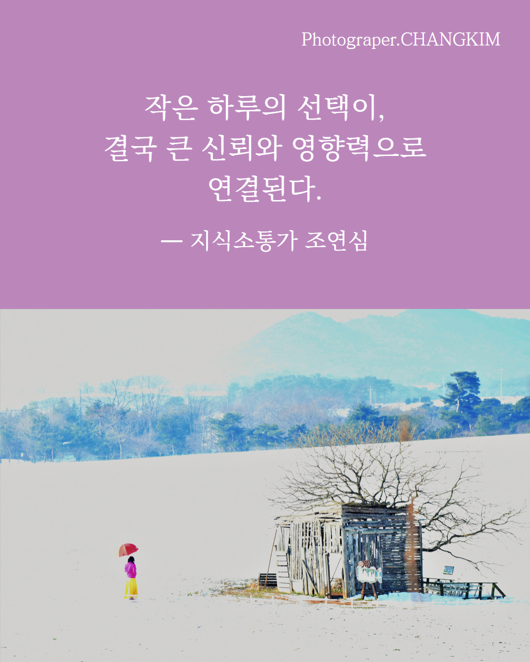 “작은 하루의 선택이, 결국 큰 신뢰와 영향력으로 연결된다.” — 지식소통가 조연심